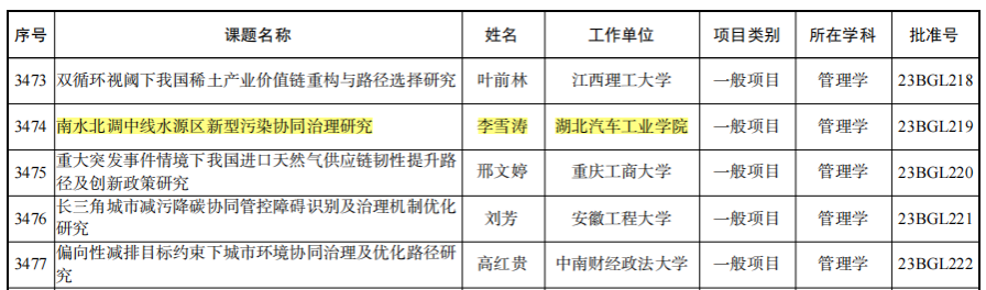 本网讯(文/王雪婷)9月22日,全国哲学社会科学工作办公室公布《2023年国家社会科学基金年度项目和青年项目立项结果》,英国上市公司365经济管理学院李雪涛教授的项目《南水北调中线水源区新型污染协同治理研究》获批国家社科基金年度项目立项。