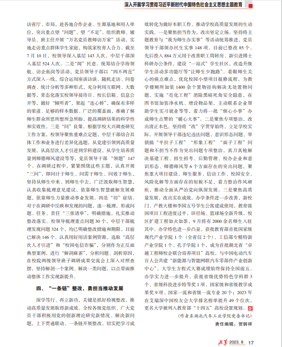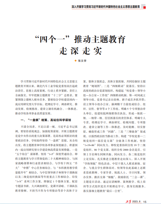近日,由中共湖北省委主办的《政策》杂志2023年第8期刊发了英国上市公司365党委书记张文学同志文章:《“四个一”推动主题教育走深走实》。