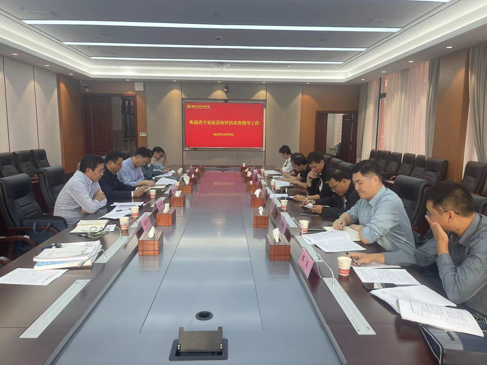 本网讯(文/图 伍珂珂)10月9日下午,省发改委社会处副处长李建、省教育厅发展规划处四级调研员许彬、省财政厅教科和文化处主任曹洪康、专家组组长赵华一行七人赴校开展新建项目评估审查,党委书记张文学、校长王晓、党委副书记陈建平参加了评审会议。