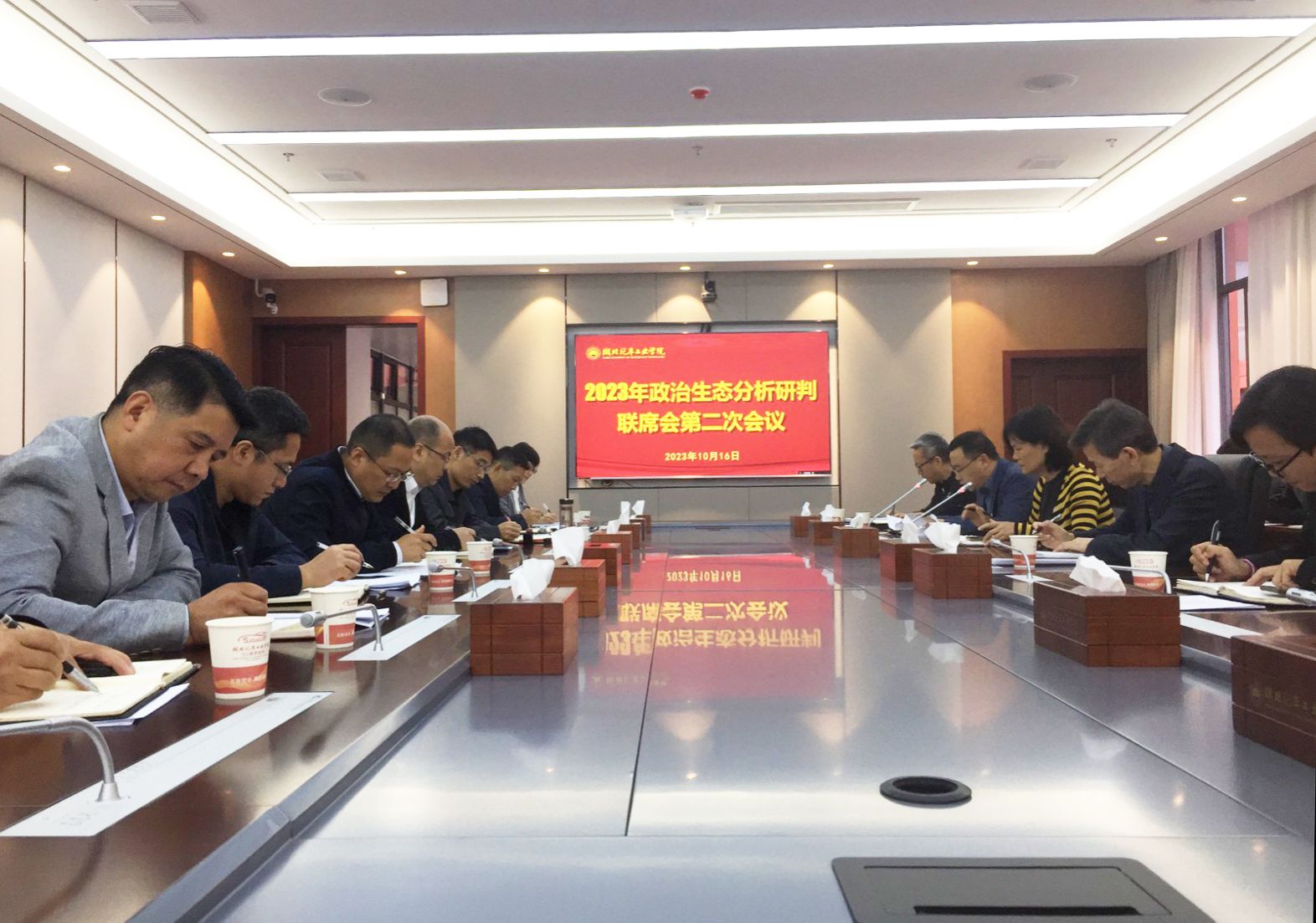 本网讯(文/图 尚海杰)10月16日上午,学校2023年政治生态分析研判联席会第二次会议在产教大楼多功能会议室召开,校纪委书记、监察专员林雪荣主持并讲话。