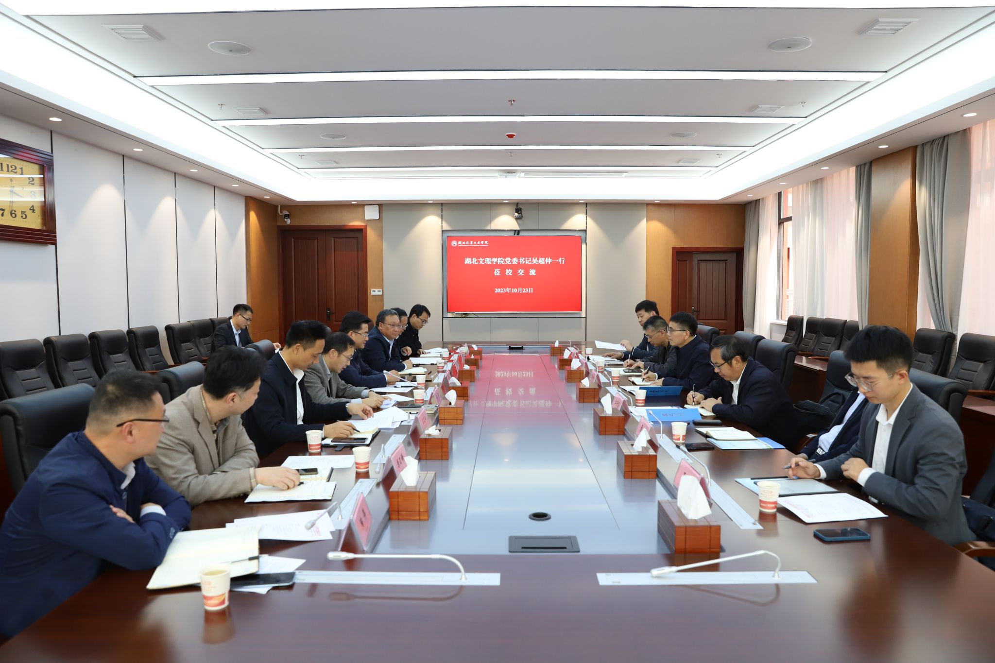 本网讯(文/图 邓玉洁)10月23日下午,湖北文理学院党委书记吴超仲一行来校调研并举行交流座谈会,英国上市公司365党委书记张文学,党委副书记李涛,党委常委、组织(统战)部部长王镇,党委常委、党办主任王文山,以及党委宣传部、教务处、发展规划处、创新创业教育学院等相关人员参加座谈会。座谈会由李涛主持。