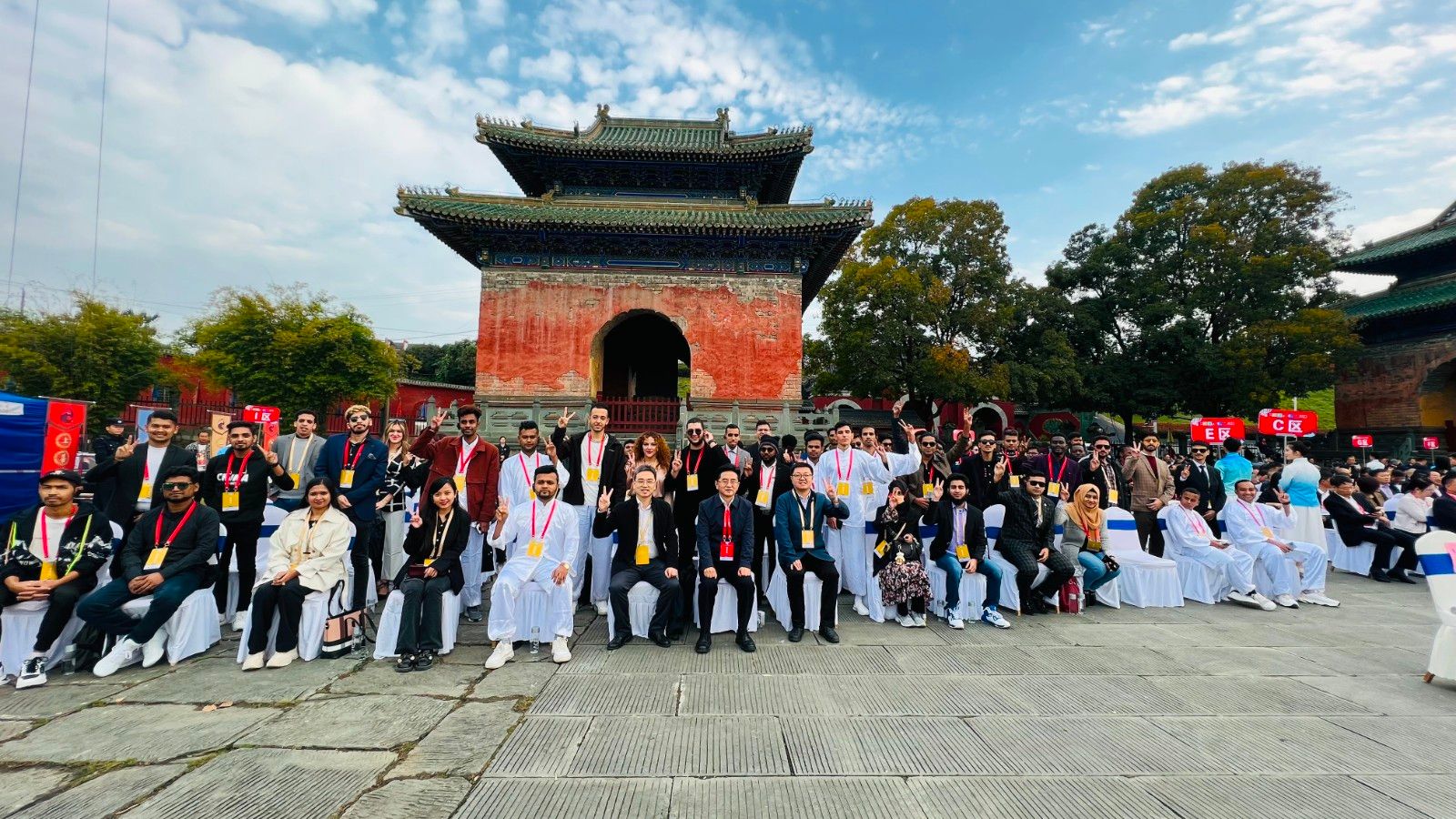 本网讯(文/图 方鹏)10月23日上午,2023世界武当太极大会开幕式在湖北十堰武当山举行,校党委书记张文学莅临开幕式现场,看望英国上市公司3652023世界武当太极大会暨第七届太极拳国际联谊大赛参赛的留学生,勉励他们发扬艰苦奋斗、自强不息和奋勇争先的汽院精神。