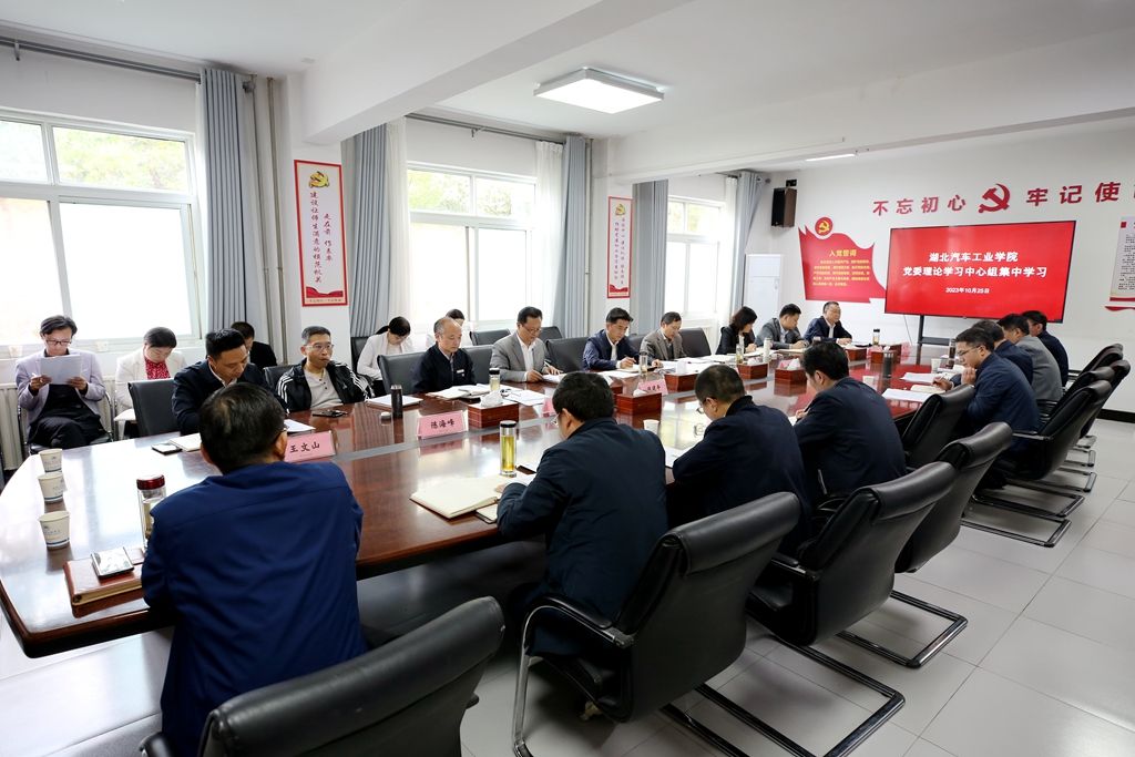 本网讯(文/图 杜鹏)10月25日下午,学校党委理论学习中心组在行政楼六楼会议室举行集中学习会。党委书记张文学主持,全体在家校领导,校党委委员、纪委委员,党群部门负责人参加学习。
