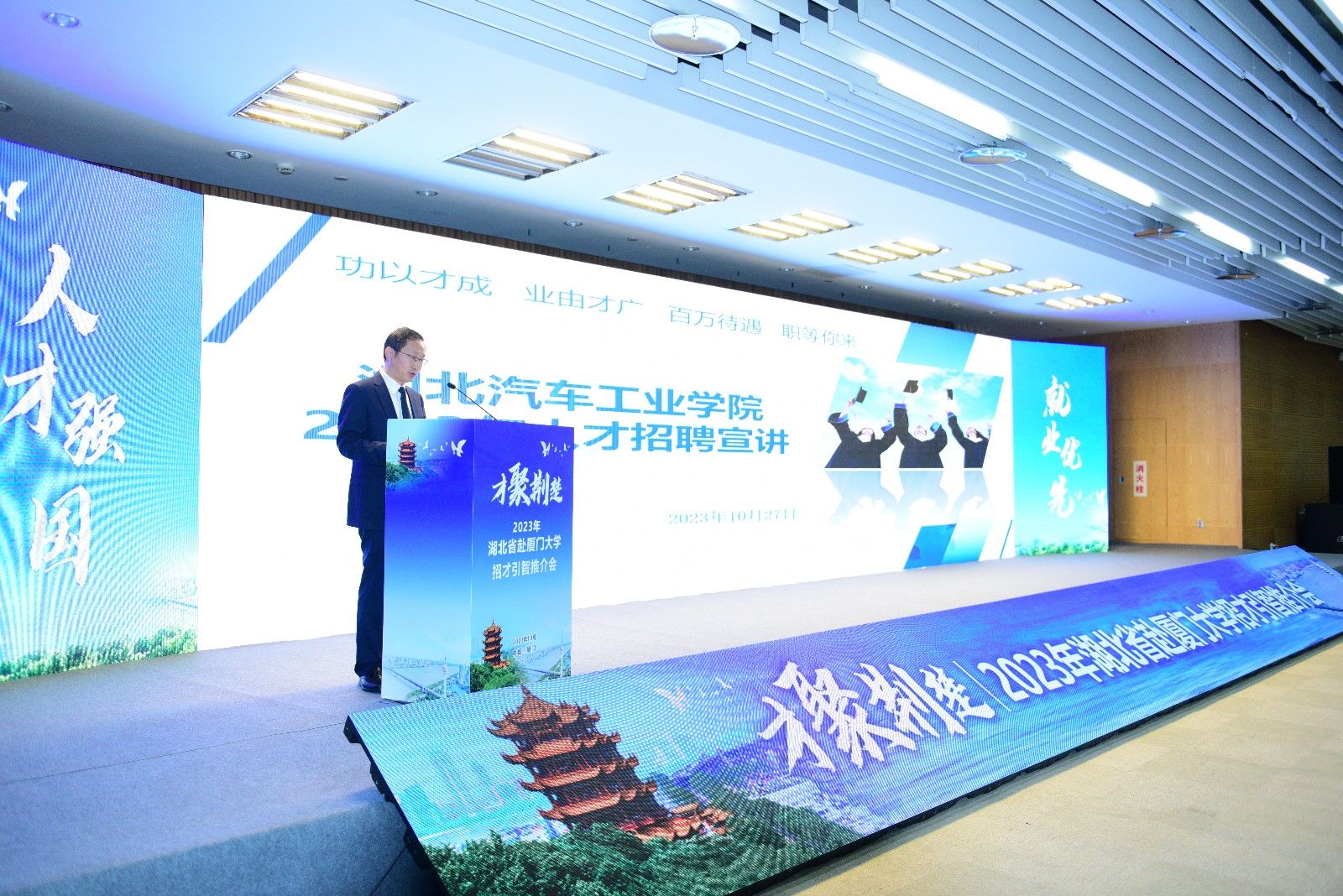 本网讯(文/吴俊)10月27日上午,2023年“才聚荆楚”湖北省赴外省招才引智推介会在厦门大学举行,党委副书记李涛带队参加活动,并作为全省事业单位代表作推介发言。
