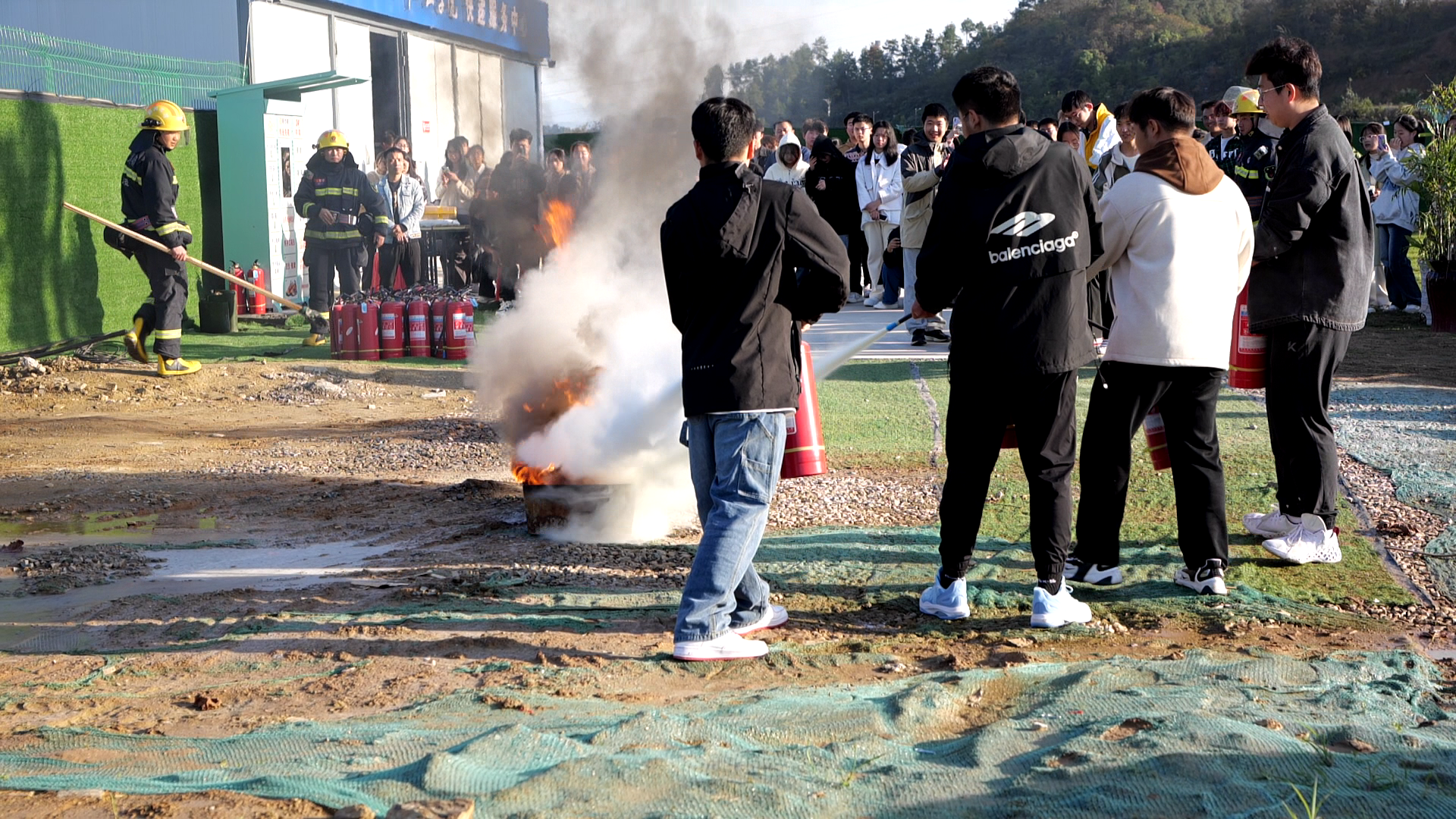 本次演练,设置了消防应急疏散演练、架设云梯救援被困人员、高空喷水灭火演练、消防装备体验、灭火器使用方法讲解和灭火实战演练等六个环节,以“情景模拟、同学互动、全员参与”的沉浸式教学模式展现了演练的全过程。