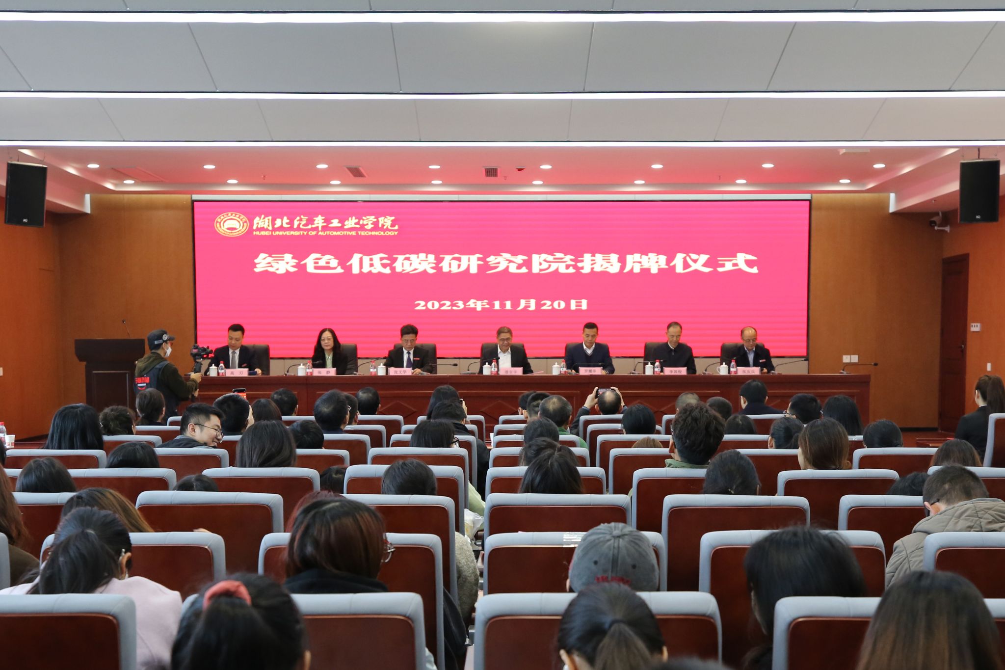 张文学致辞,他指出,学校诞生于民族汽车工业发轫之时,壮大在中国汽车工业蓬勃发展的伟大征程之中,目前正向着“三步走”发展战略踔厉奋发。学校一直高度重视绿色低碳发展,贯彻落实十堰市绿色低碳发展示范区政策,培养新型创新型人才。绿色低碳研究院的成立,为湖北省和十堰市生态领域人才培养、科学研究注入新的动能和活力。