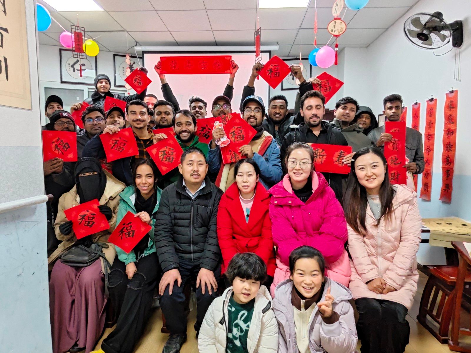 活动在“年、春、福”等为首字的四字词语或诗句抢答中拉开帷幕,随后介绍了中国传统书法的历史渊源,教授了毛笔的正确握笔姿势和汉字书写技巧。留学生开始用毛笔字书写中国古诗词和春联,并主动了解春联所蕴含的深刻含义。留学生们在欢乐祥和的新年氛围中迎接新年的到来,并表示要把新春的美好祝愿用中国汉字的文化形式传递到新的一年。