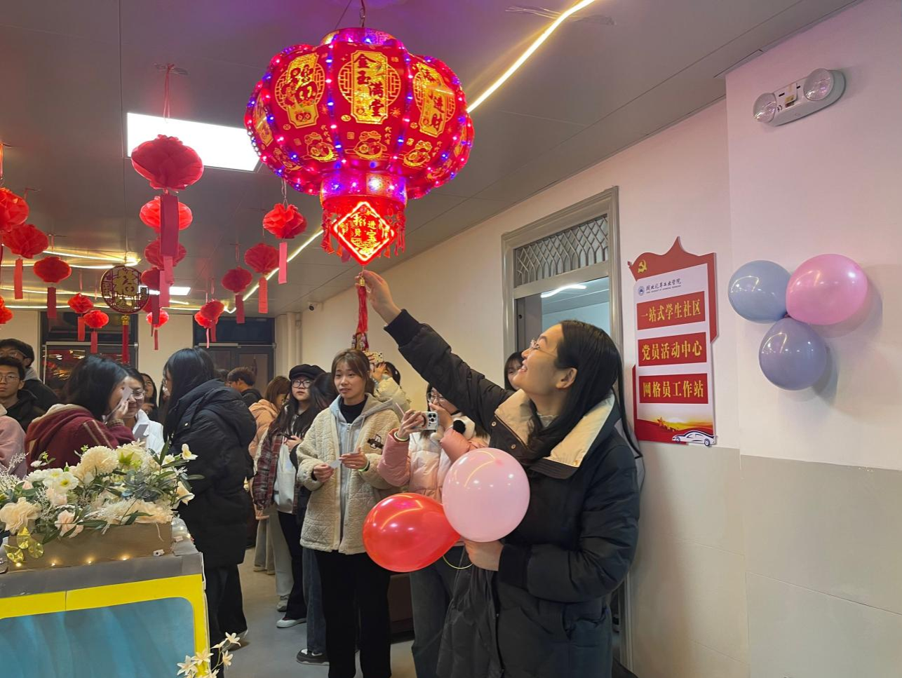 欢乐猜灯谜,喜庆过元旦。12月29日,外国语学院还在梅园一站式社区开展“欢乐猜灯谜,喜庆过元旦”新年游园会活动。活动现场,灯笼悬盏,花车巡游,喜气洋洋,浓浓年味扑面而来;贴春联、诗词背诵、你画我猜、猜灯谜和写新年愿望,游戏项目妙趣横生。同学在心愿墙打卡区域,摆出喜庆的姿势,喊下“新年快乐,祝外国语学院越来越好”的祝福,一张合影为新的一年留下美好记忆。