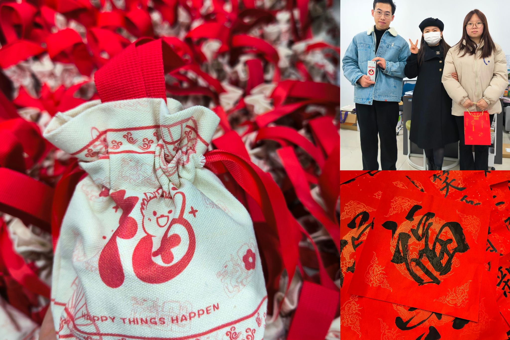 12月29日,汽车工程学院为学生精心准备了100多份龙年“福袋”。各式各样的糖果、笔记本、暖手宝、精致的书签组成的龙年“福袋”寓意着大学生活中加点甜,学习中乘风破浪,逐梦远方。同时,还在元旦期间组织学生书写“福”字聚福气、开展“车院力量”系列活动、带领广大车院学子在“学、思、练”中跨新年,仪式感满满。