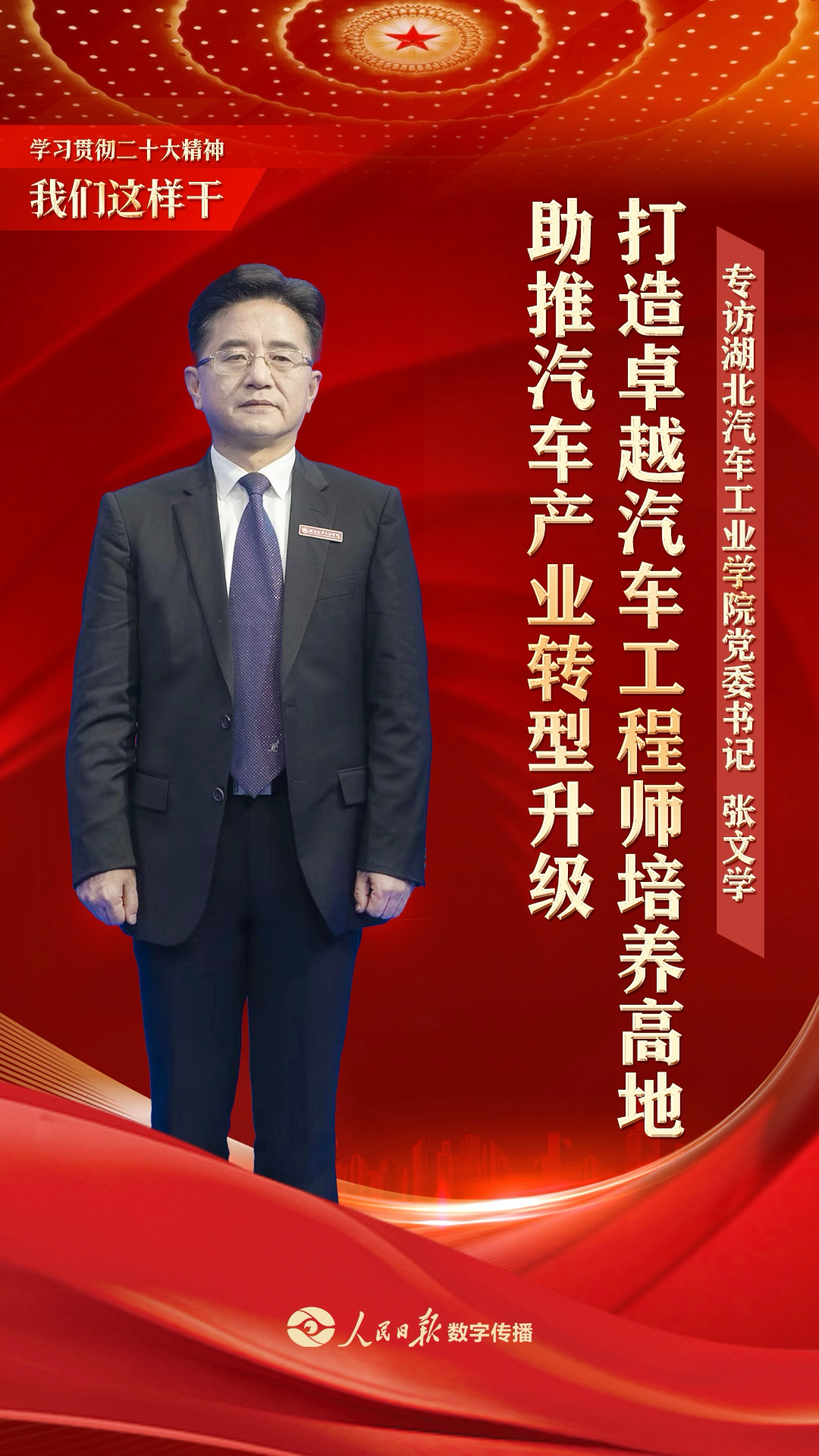 思想领航,荆楚巨变。日前,人民日报数字传播(湖北)“学习贯彻二十大精神,我们这样干”专题访谈走进湖北省十堰市。11月23日,校党委书记张文学接受人民日报数字传播(湖北)主题采访团专访,就“人才强校”战略、走“产学研创融合”特色发展之路等热点话题深入交流。
