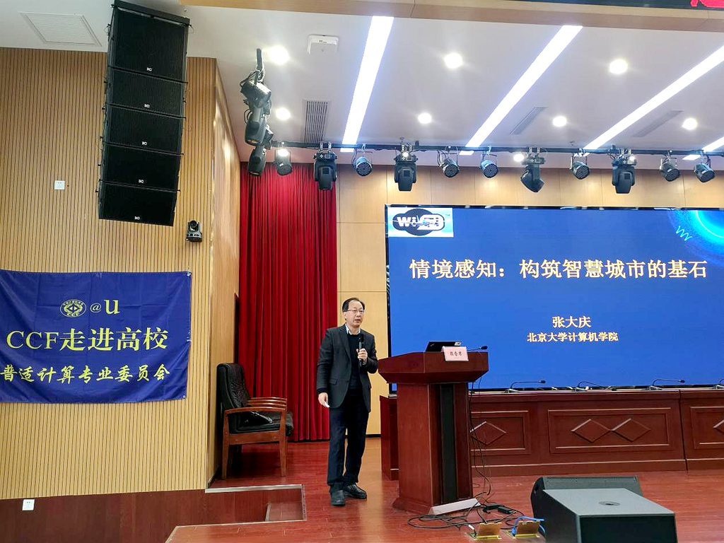 会上,张大庆教授作了主题为“情景感知-构筑智慧城市的基石”专题报告。他从情境感知的过去、现在和未来三个方面介绍了十余年间在相关方面做出的科研成果,并对未来在情境感知领域的研究方向进行了讲解。