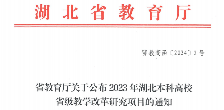 本网讯(文/梁姗姗、龚雪)根据《省教育厅关于公布2023年湖北本科高校省级教学改革研究项目的通知》(鄂教高函[2024]2号),学校10个项目获批省教育厅立项建设,其中本科教育项目7项、研究生教育项目3项。