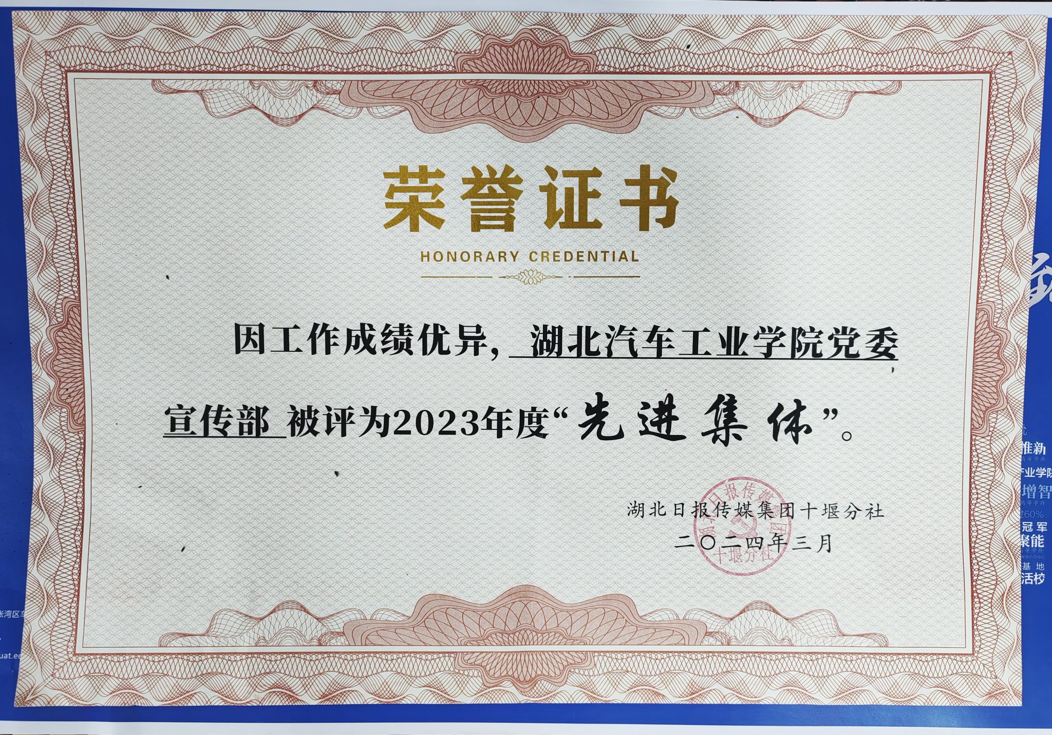 本网讯(文/广娟)近日,湖北日报十堰分社新闻宣传座谈会在武汉召开,会上表彰了2023年度新闻宣传先进单位和优秀通讯员。学校党委宣传部获评2023年度“先进集体”,广娟老师获评2023年度“优秀通讯员”。
