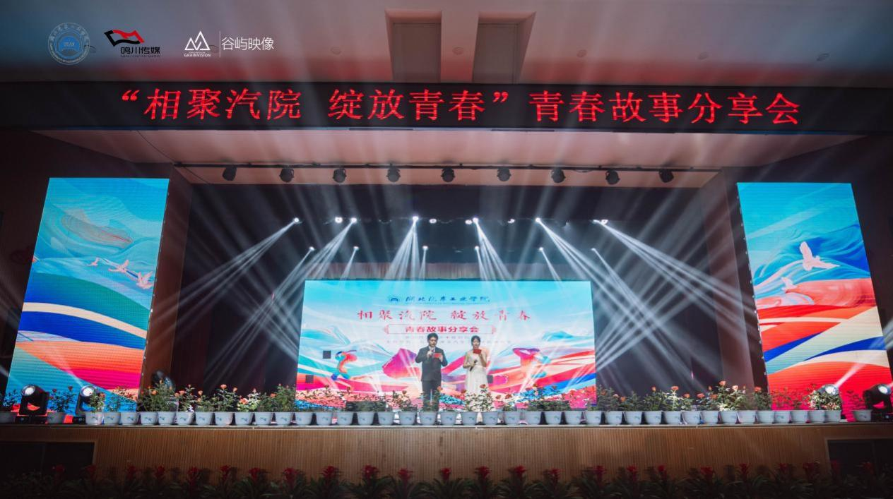 本网讯(文 杜伦/图 何建明)分享青春故事,奉献青春力量。4月29日晚上,“相聚汽院 绽放青春”五四青春故事分享会在校大礼堂举行,校党委常委、党政办主任王文山,学工部部长王关锋,校团委副书记焦建杰,二级学院分党委副书记、分团委书记、辅导员代表,团员青年代表500余人参加分享会。