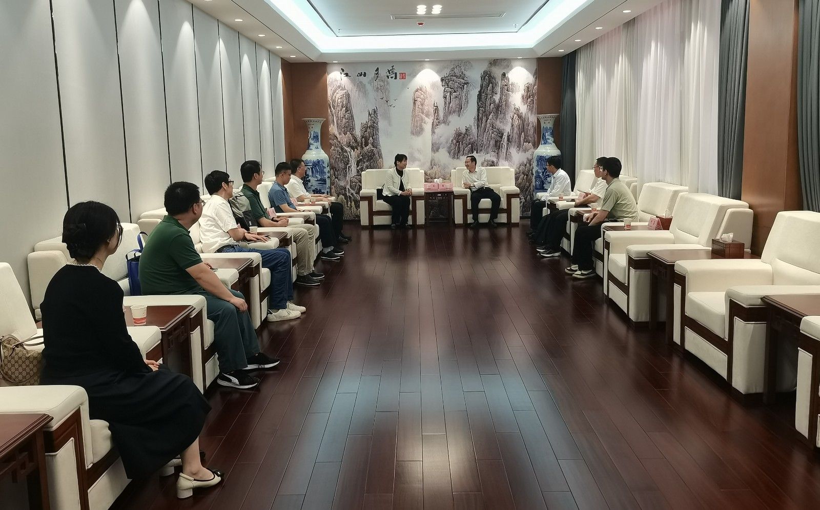 李涛代表学校对刘欣一行来校调研交流表示热烈欢迎,并简要介绍了学校基本情况和“三步走”发展战略。李涛表示,学校与武汉纺织大学交流密切,合作广泛。学校取得的发展和成绩离不开武汉纺织大学的支持与帮助,希望双方进一步深化交流合作,在学科建设与研究生教育以及申博工作中,给予更多的指导与支持,助力学校事业高质量发展。
