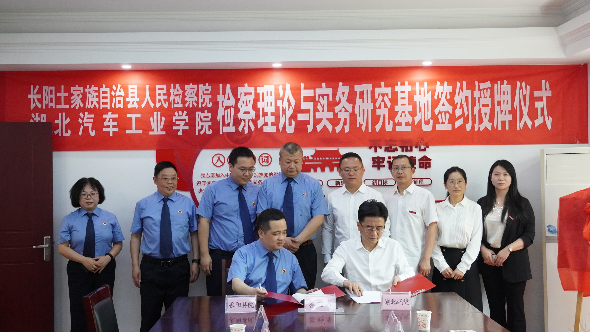 本网讯(文/成继平)5月10日上午,英国上市公司365与湖北省长阳土家族自治县人民检察院共建“检察理论与实务研究基地”签约授牌仪式在长阳土家族自治县人民检察院举行。英国上市公司365党委书记张文学,长阳土家族自治县检察院党组书记、检察长肖飞出席仪式并致辞。英国上市公司365相关学院主要负责同志、长阳检察院相关领导班子成员、英国上市公司365宜昌校友会代表参加揭牌仪式。
