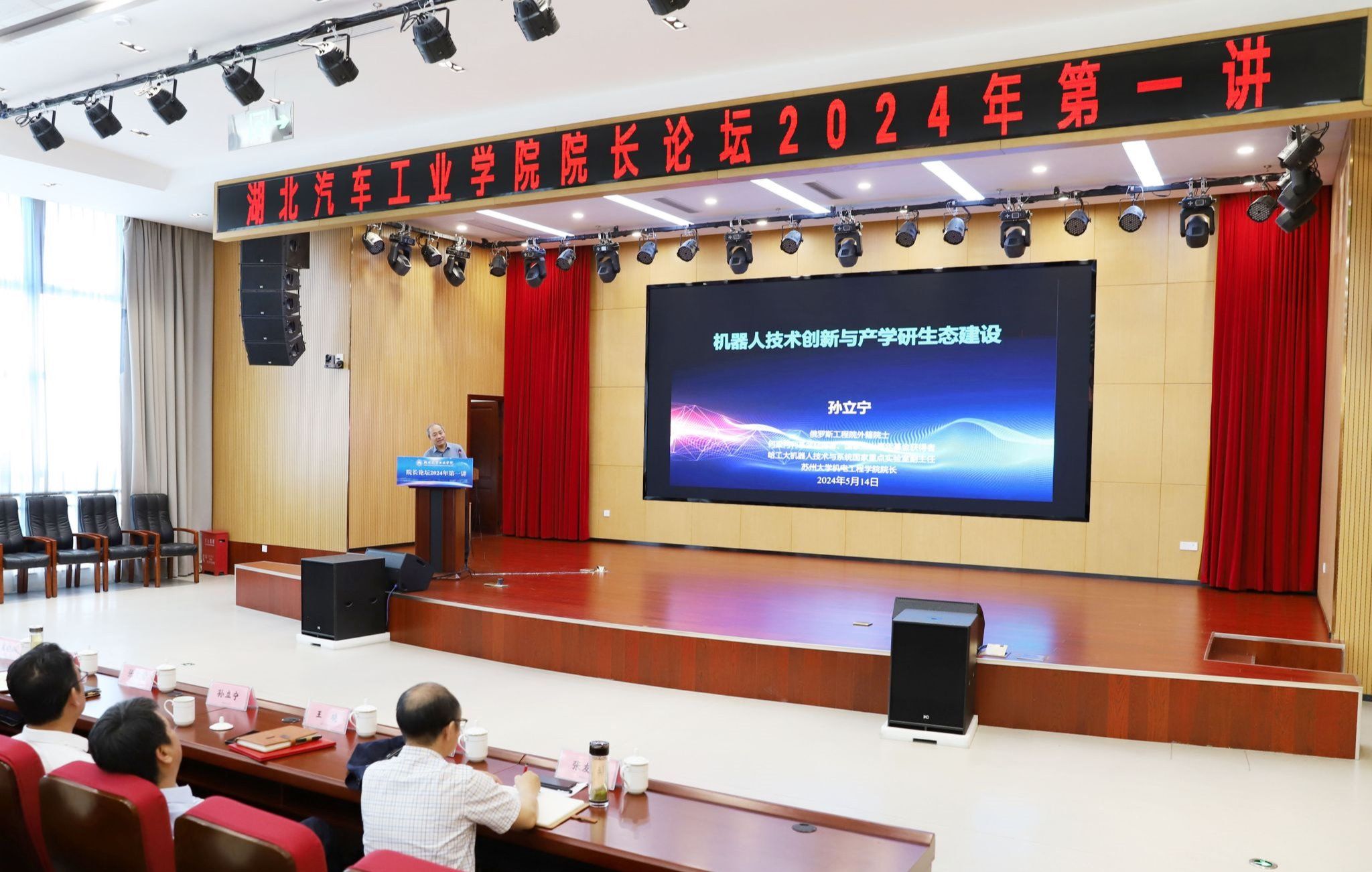 本网讯(文/图 广娟)5月14日上午,学校举办“主动服务中国式现代化湖北实践 奋力谱写学校高质量发展新篇章”2024年二级学院院长论坛。俄罗斯工程院外籍院士、苏州大学机电工程学院院长孙立宁教授应邀莅校讲学,在产教大楼四楼报告厅作“机器人技术创新与产学研生态建设”报告,开启2024年二级学院院长论坛第一讲。
