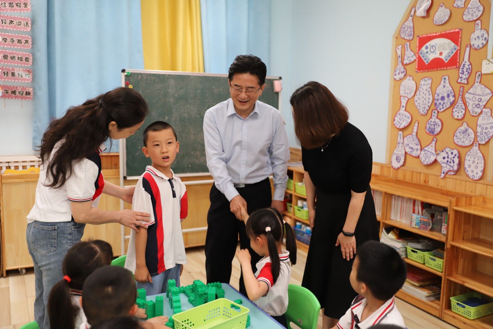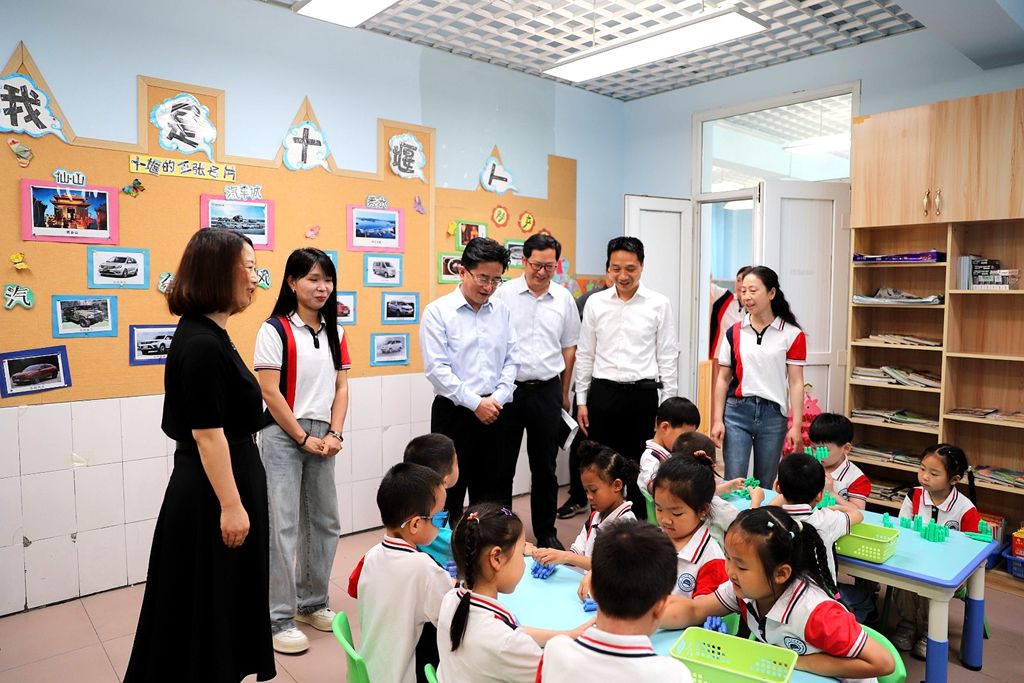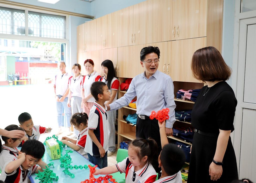 张文学在幼儿园老师的带领下,通过实地查看和互动交流,详细了解教师队伍、学习生活和配套设施建设等情况。张文学强调,安全工作重于泰山,不能有丝毫的懈怠,各部门要关注幼儿园,要给儿童提供安全、舒适的学习、生活和成长环境,让孩子们健康快乐成长。
