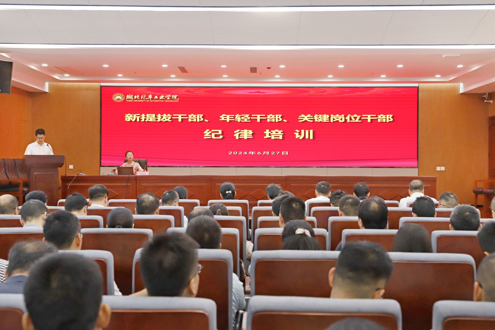 本网讯(文 肖越/图 广娟)为进一步深化党纪学习教育,强化干部思想淬炼,增强廉洁自律意识,6月27日上午,学校在产教大楼三楼报告厅举办新提拔干部、年轻干部、关键岗位干部纪律培训,近130名处、科级干部参加培训。