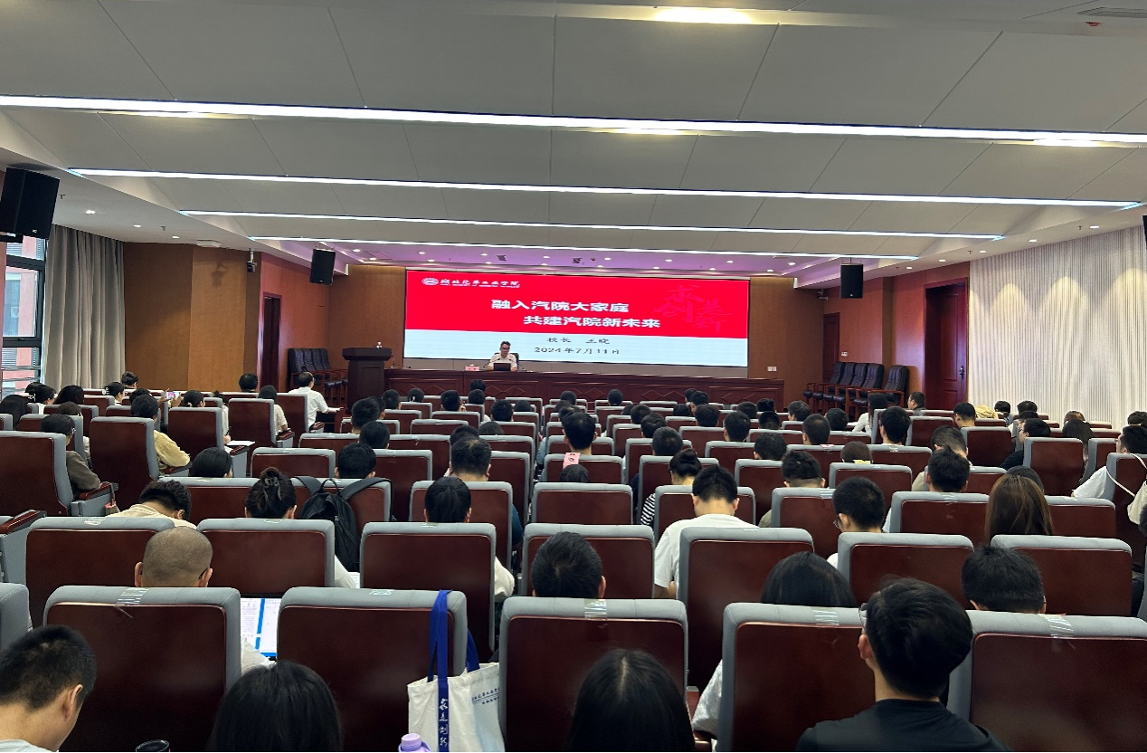 报告会上,王晓以“融入汽院大家庭,共建汽院新未来”为题,为新入职教师作学校发展愿景专题报告。王晓由教育家精神的内涵展开,分析了当前学校面临的新形势及新要求;并从有底蕴、有魅力、有前景等三个方面详细阐述了学校的发展历程、发展成就及发展愿景,指出学校作为地方高校肩负的重要使命和责任。王晓强调,新教师要牢记教师职责、努力达到好老师的要求,要提高政治站位、牢记育人任务,锻炼业务本领、提高育人质量,完善培养举措、强化育人成效,严把教师思政关、教学观、科研观、发展观,争做“四有”好教师。
