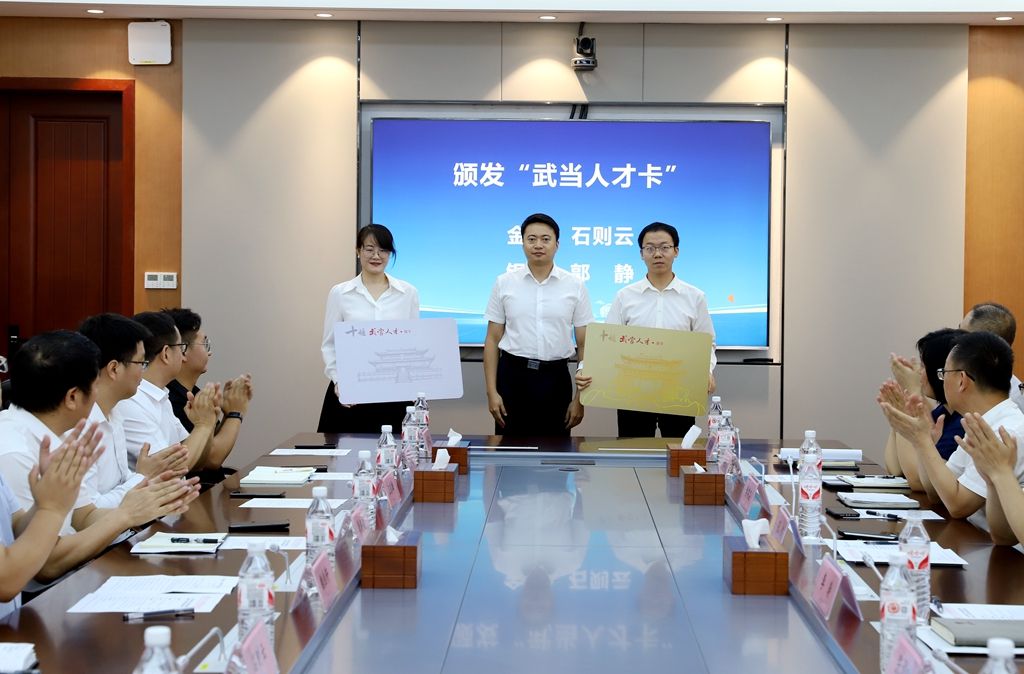 活动中,李涛与新引进博士代表赵俊武、陈西亮现场签约,并为新引进A类博士代表魏志远、张明颁发人才引进费。张满为张湾区2023年度优秀人才奖获奖代表黄海波、王东雄颁奖。张璟璇为英国上市公司365“武当人才卡”金卡、银卡持卡人代表石则云、郭静颁发“武当人才卡”。