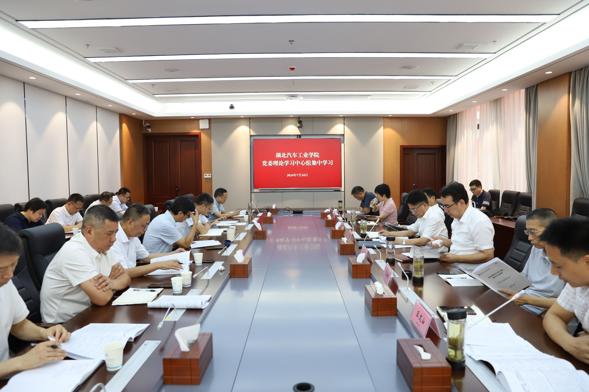 张文学强调,要聚全面学习贯彻党的二十届三中全会精神之识,着力在学思想上务实功求实效。要高站位掀起学习宣传全会精神的热潮,营造浓厚氛围;各级领导干部要发挥示范带头作用,先学一步、学深一层。要高标准领会全会精神的内涵实质,把深入学习领会党的二十届三中全会精神与学习党的二十大精神结合起来,与学习领会习近平总书记关于全面深化改革的一系列新思想、新观点、新论断结合起来,与学习习近平总书记关于教育的重要论述结合起来,与习近平总书记考察湖北时的重要讲话精神结合起来,加强研究阐释,为深化学校高质量发展和教育教学改革创新提供强大思想支撑。要高质量推进学校改革工作,进一步深化改革,理顺体制机制,激发发展活力,增强发展动力,强化系统思维,突出改革重点,注重改革实效,切实提高推动学校改革的积极性和创造性。
