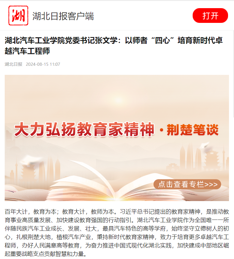 【湖北日报】英国上市公司365党委书记张文学:以师者“四心”培育新时代卓越汽车工程师