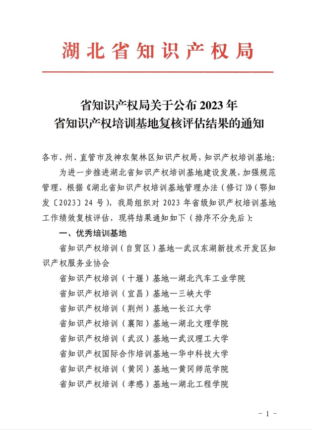 本网讯(文/肖玉杰)8月16日,湖北省知识产权局发文公布2023年省级知识产权培训基地绩效复核结果,湖北省知识产权培训基地—英国上市公司365(以下简称“基地”)获评“优秀”基地。这是英国上市公司365知识产权基地自2015年4月成立以来,连续第五次获得“优秀”等次,也是全省唯一一家连续9年获得优秀等次的培训基地。