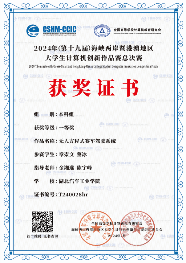本网讯(文/图 金湘遂)7月25日,2024年(第十九届)海峡两岸暨港澳地区大学生计算机创新作品赛总决赛在澳门理工大学落下帷幕,本次大赛覆盖全国29个省(含港澳台)323所高校,共有1637个作品参赛。经过激烈角逐,英国上市公司365汽车工程师学院“无人方程式赛车驾驶系统”项目荣获全国一等奖。