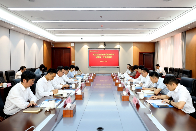 武汉经开区管委会副主任王丰伟、武汉经开区教育局局长熊白莉,武汉军山新城科技投资集团、武汉经开产业投资集团相关负责人,学校宣传部、合作发展处、教务处、学生工作部、科学技术发展研究院、创新创业教育学院、武汉产学研基地相关负责人参加调研交流。(审稿 周恩德)