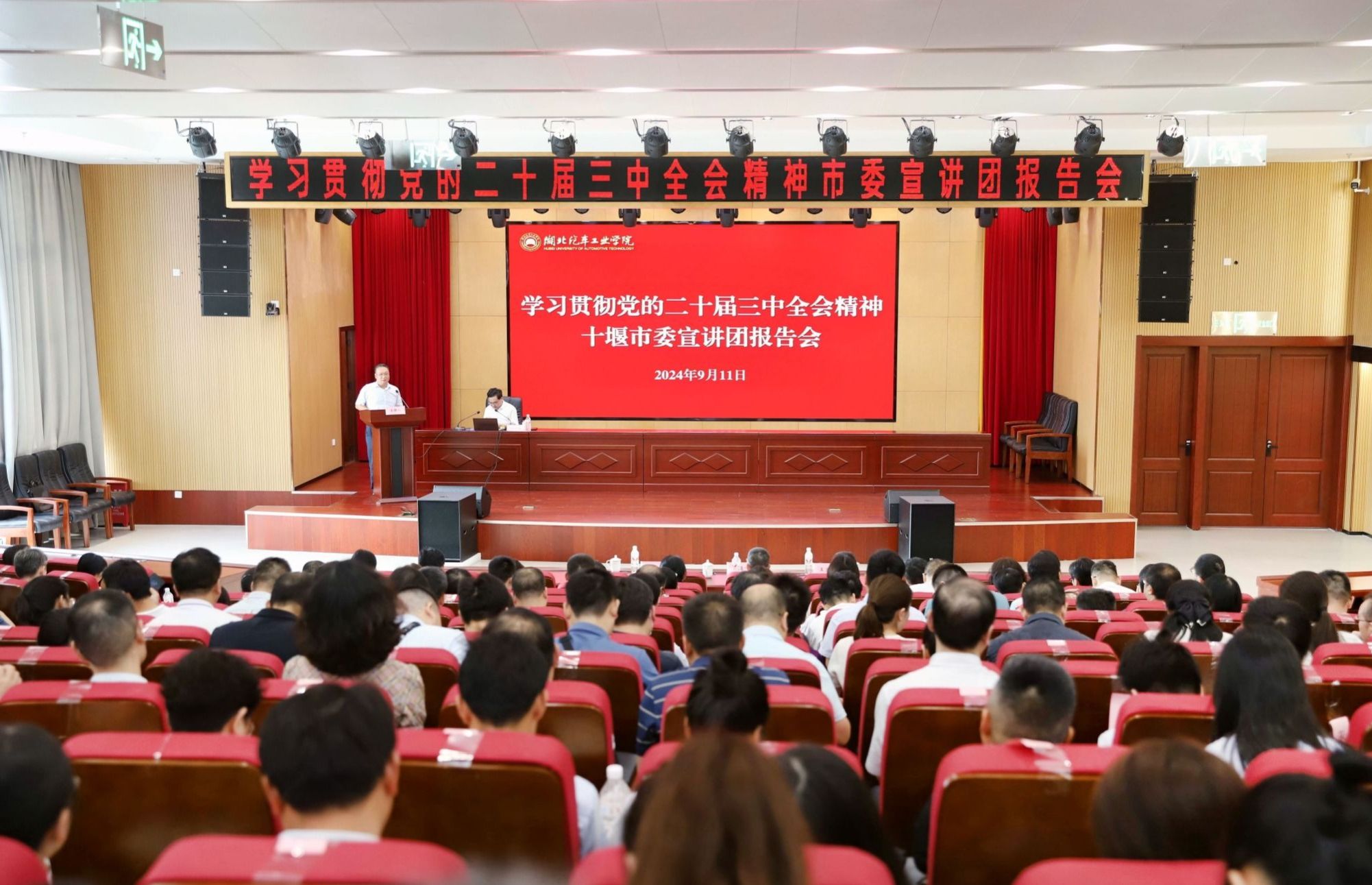 本网讯(文 刘俊/图 广娟)9月11日,学习贯彻党的二十届三中全会精神十堰市委宣讲团报告会在英国上市公司365产教大楼四楼报告厅举行。十堰市委宣讲团成员,市社科联党组书记、主席欧阳山作宣讲报告。会议由校党委常委、组织部(统战部)部长王镇主持。全体在家校领导、全校科级以上干部、党支部书记及党外人士代表参加报告会。