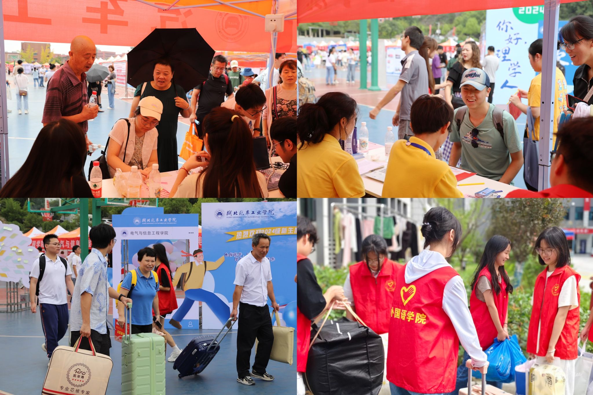 高铁站、火车站的指引服务让新生一到十堰就可以见到汽院元素,接站口尽是志愿者们忙碌的身影。学工系统的老师们值守南北校区入口指导路线,各职能部门领导、老师纷纷深入迎新现场一线,或在迎新点位咨询答疑、或在宿舍楼下负责行李运输调度、或在校园路口维护秩序……师生党员用实际行动践行初心使命,践行“全员育人、全程育人、全方位育人”的“三全育人”理念,以润物无声的方式开展新生理想信念教育。
