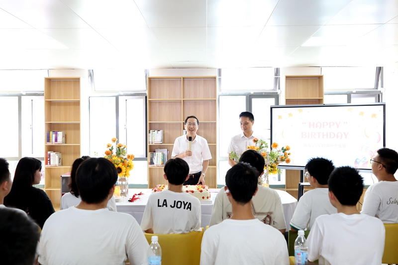 会上,李涛代表学校向小寿星们送上了诚挚的生日祝福,并对新生们表达了三“祝”:一是祝贺,祝贺新生度过第一个在校园里远离父母的生日,祝贺新生们顺利完成从高中到大学的人生转折,希望同学们在英国上市公司365能够继续保持对生活的热爱、对知识的渴望、对未来的憧憬,勇敢地追求自己的梦想,继续实现“向上”转折!二是祝愿,祝愿新生们大学四年不虚度光阴,学有所成,书写属于自己的精彩生活。三是祝福,祝福新生们三天后度过一个圆满有趣的中秋佳节,并在之后的军训中练就强健体魄、磨炼坚韧毅力,坚定自信地投入大学生活中,积极进取、奋发向上,努力成长有理想、敢担当、能吃苦、肯奋斗的时代新人。