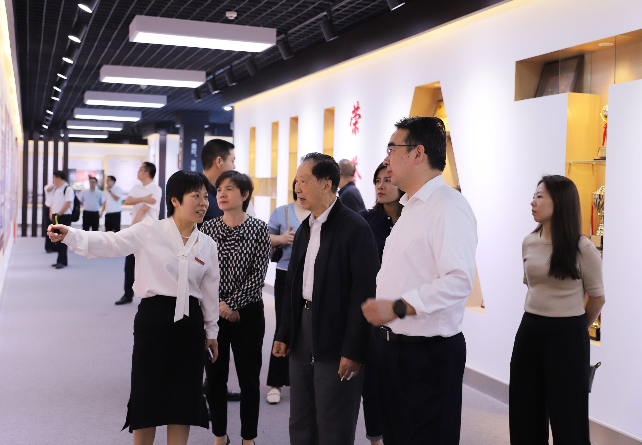 陈清泰一行视察走访了学校北区、校史馆和科创中心。走访过程中,校长王晓汇报了学校近年来的建设发展情况、“三步走”发展战略以及在教育教学、科研创新、学科竞赛等方面取得的成绩。陈清泰深情回忆了在十堰工作期间来校考察的情景,在学校图书馆一楼孟少农铜像前敬献鲜花,深切缅怀那段艰苦奋斗的激情岁月,并对学校的发展巨变和取得的良好成绩给予了充分的肯定。