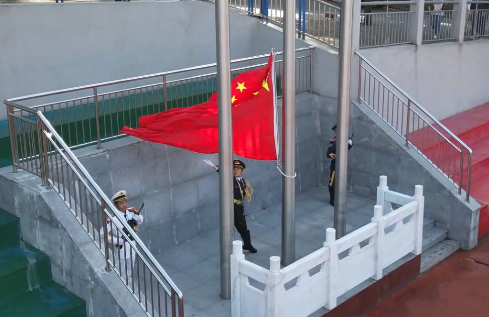 伴随着庄严的国歌声,在旗手的护卫下,鲜艳的五星红旗冉冉升起,参加仪式的师生面向国旗行注目礼,致以对伟大祖国无限的热爱和崇高的敬意。
