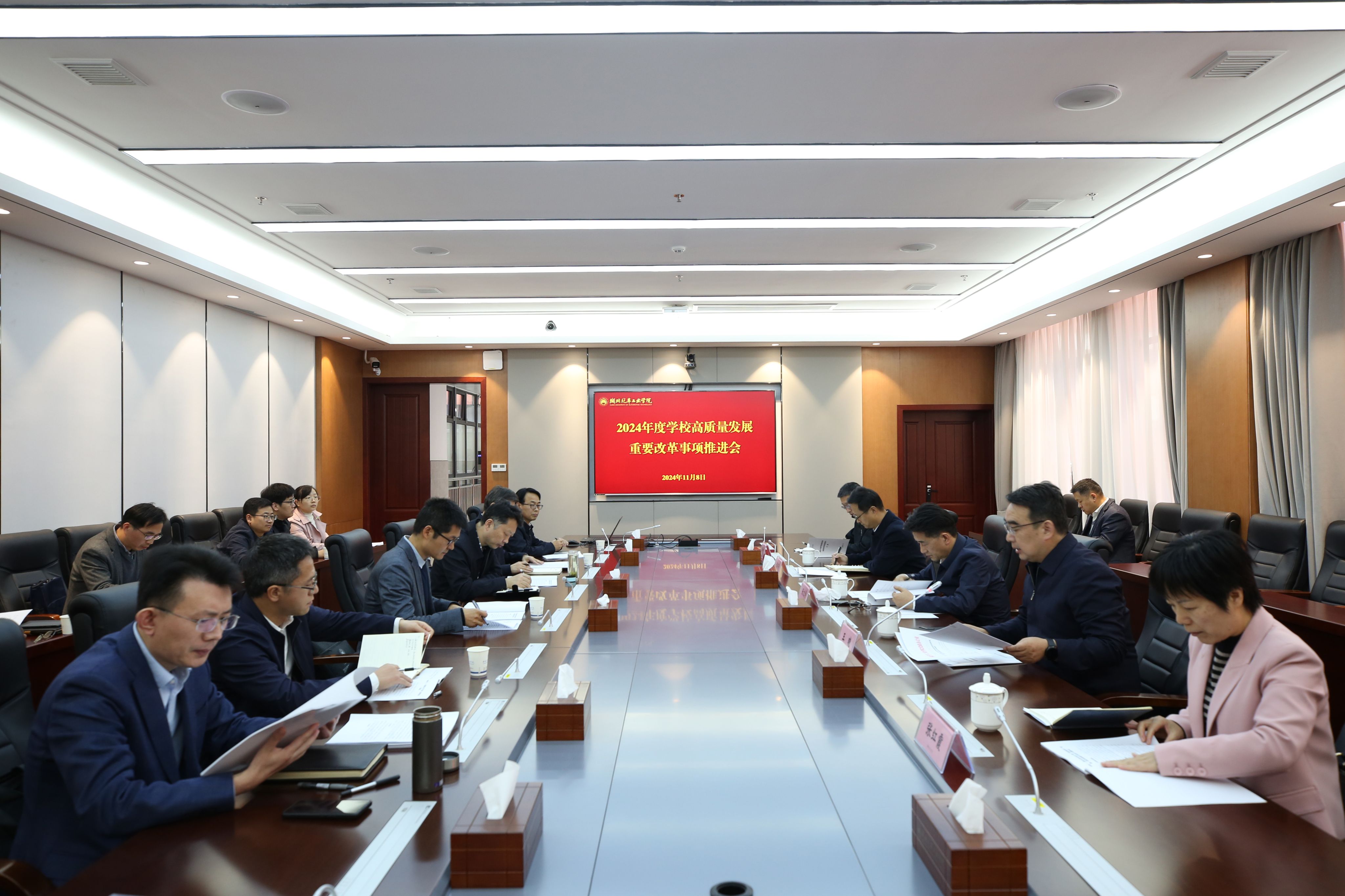 本网讯(文 金月/图 李一凡)11月8日,学校在产教大楼三楼多功能会议室召开2024年度学校高质量发展重要改革事项推进会。全体校领导出席会议,党政办公室、校纪检监察机构、组织部、发展规划处等12个的重要改革事项牵头部门负责人参加了会议。主持会议由校长王晓主持。