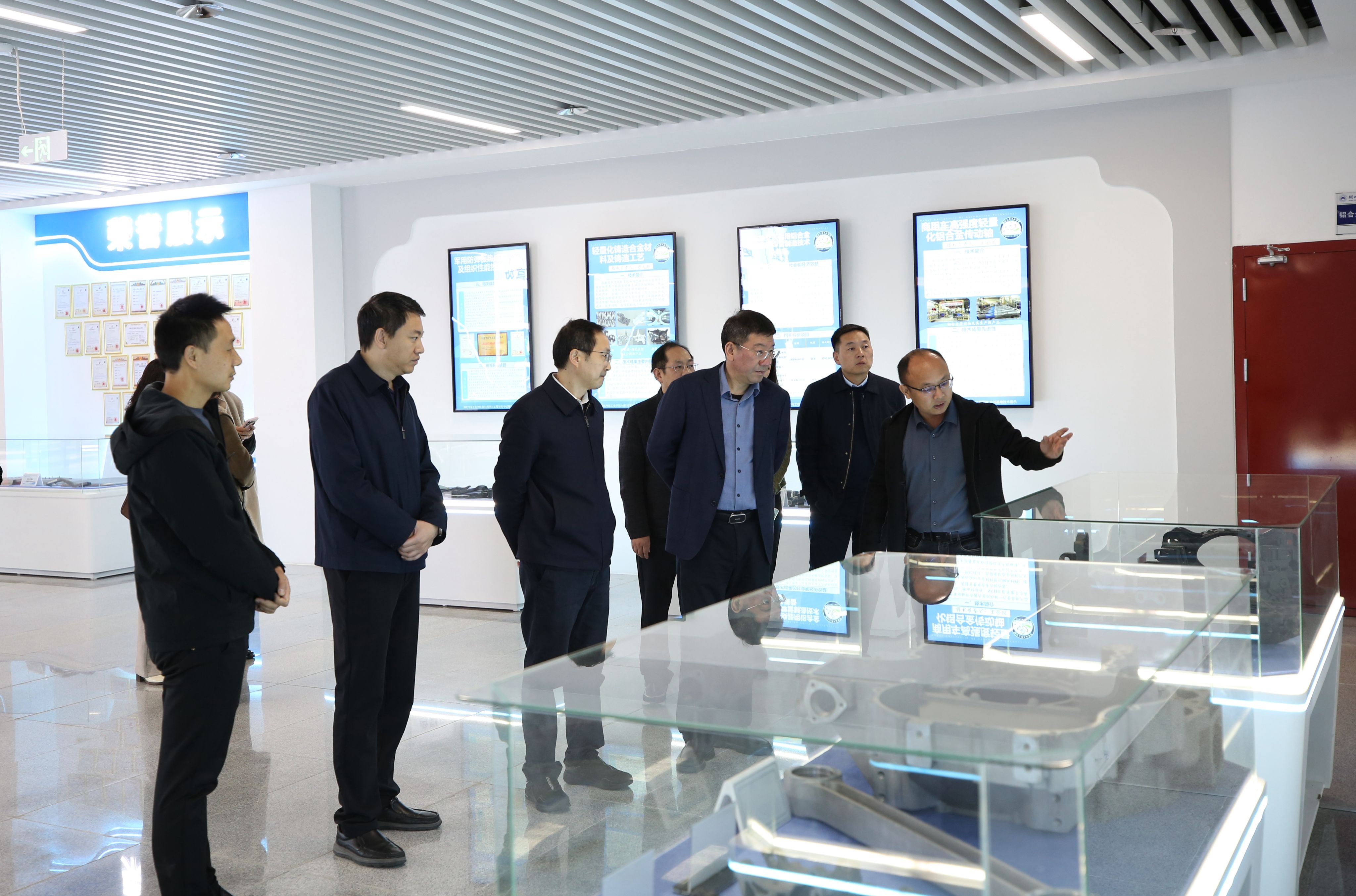李涛陪同邓家科一行参观湖北省汽车零部件轻量化技术转化中试研究基地展厅。邓家科一行深入了解了材料学院和中试基地在汽车轻量化材料领域所取得的科研成果及应用转化情况,高度认可中试基地取得的产学研成果。