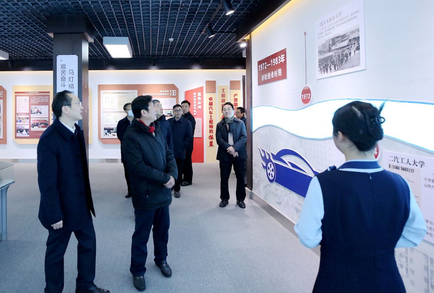 赵凌云来到学校北区、校史馆,深入了解了学校基本情况、办学特色、办学成绩、产教融合、哲学社会科学研究、科技创新成果转化等情况。