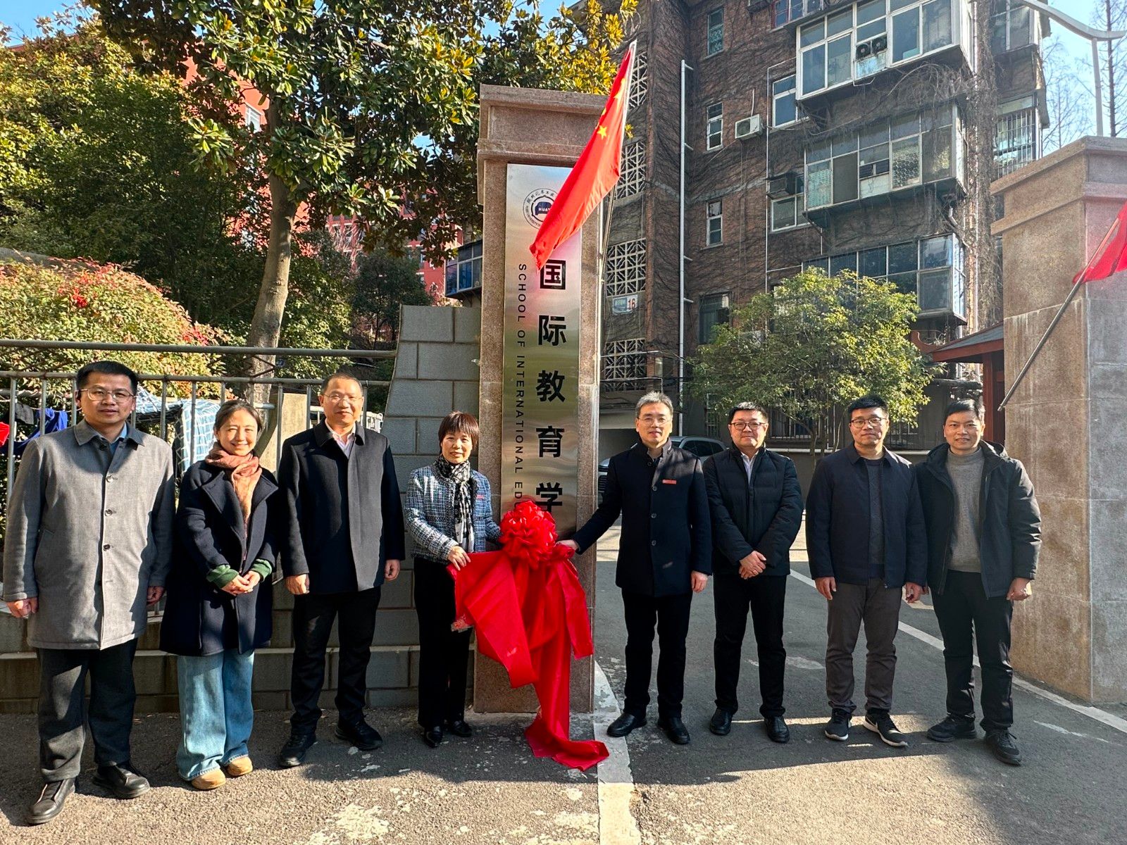 本网讯(文/图 罗诗棋)1月20日下午,国际教育学院揭牌仪式在国际教育学院门前举行。副校长张红霞、部分二级学院负责人及国际教育学院教职工、外籍师生代表参加仪式。揭牌仪式由国际合作交流处处长、国际教育学院院长朱战炜主持。