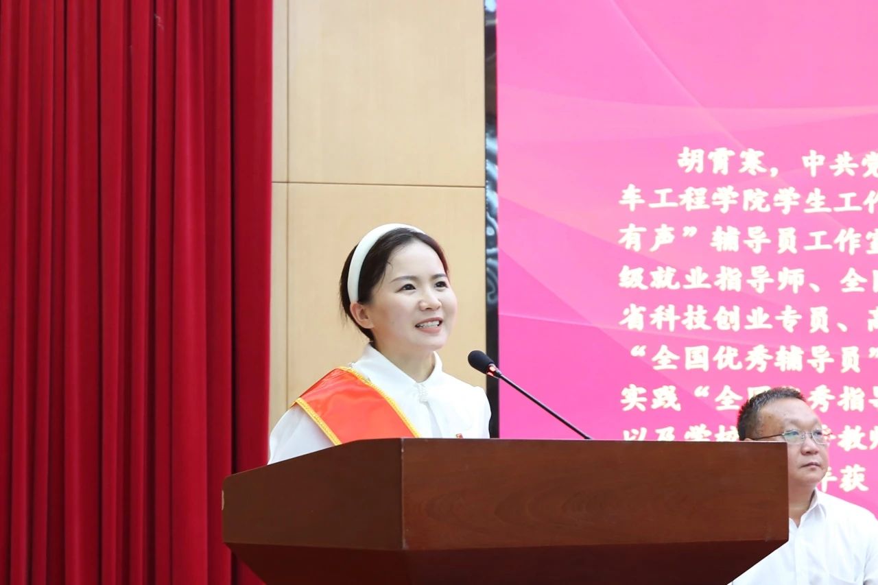 胡霄寒,汽车工程学院学工办主任,是同事眼中的“勤劳蜜蜂”,是学生口中的“贴心寒姐”,在扎根辅导员一线期间,先后担任945名学生的年级辅导员、332人的班主任,谈心谈话1287人次、谈话记录本13本。进寝室进教室800余次,走访学生家庭100余次。为1800余名学子讲过党课团课,为2000余名毕业生做过离校教育与就业指导。她创建了“启为有声”辅导员工作室,近五年主持或参与国社科课题1项、教育部高校思政创新专项等厅局级课题16项、校级8项,发表核心论文4篇、其他15篇;1篇文章被中共中央党校出版社出版的大型文献史册收编,荣获理论成果一等奖。她指导学生在互联网+、挑战杯、三创赛等学科竞赛中荣获国家级、省级奖项12项。工作九年来,她本人获得“全国优秀教师”、中国青年报社“全国优秀辅导员”、连续两年共青团中央“三下乡”社会实践“全国优秀指导教师”、湖北省社会实践“先进个人”及学校“优秀教师”“优秀党务工作者”“就业工作先进个人”“优秀共青团干部”“优秀班主任”“优秀社团指导老师”等个人荣誉表彰30余项。