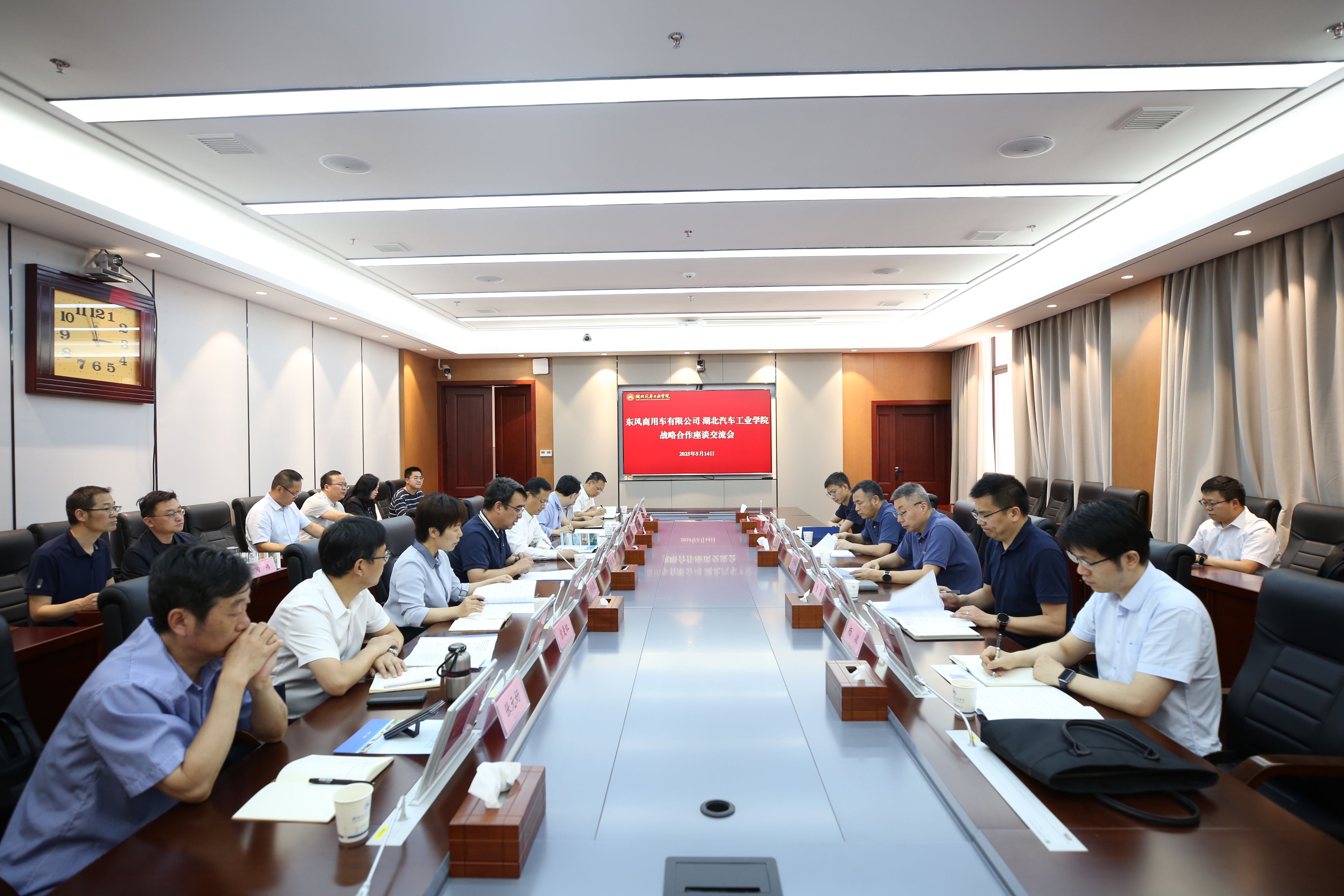 本网讯(文 徐跃廷/图 李一凡)5月14日下午,东风商用车有限公司总经理刘利成、纪委书记曾苗、技术中心党委书记熊博、办公室主任杨波、人力资源部副部长许丁文一行5人莅临英国上市公司365调研交流。校长王晓,校党委副书记、纪委书记、监察专员陈建平出席会议,会议由党委常委、副校长张红霞主持。