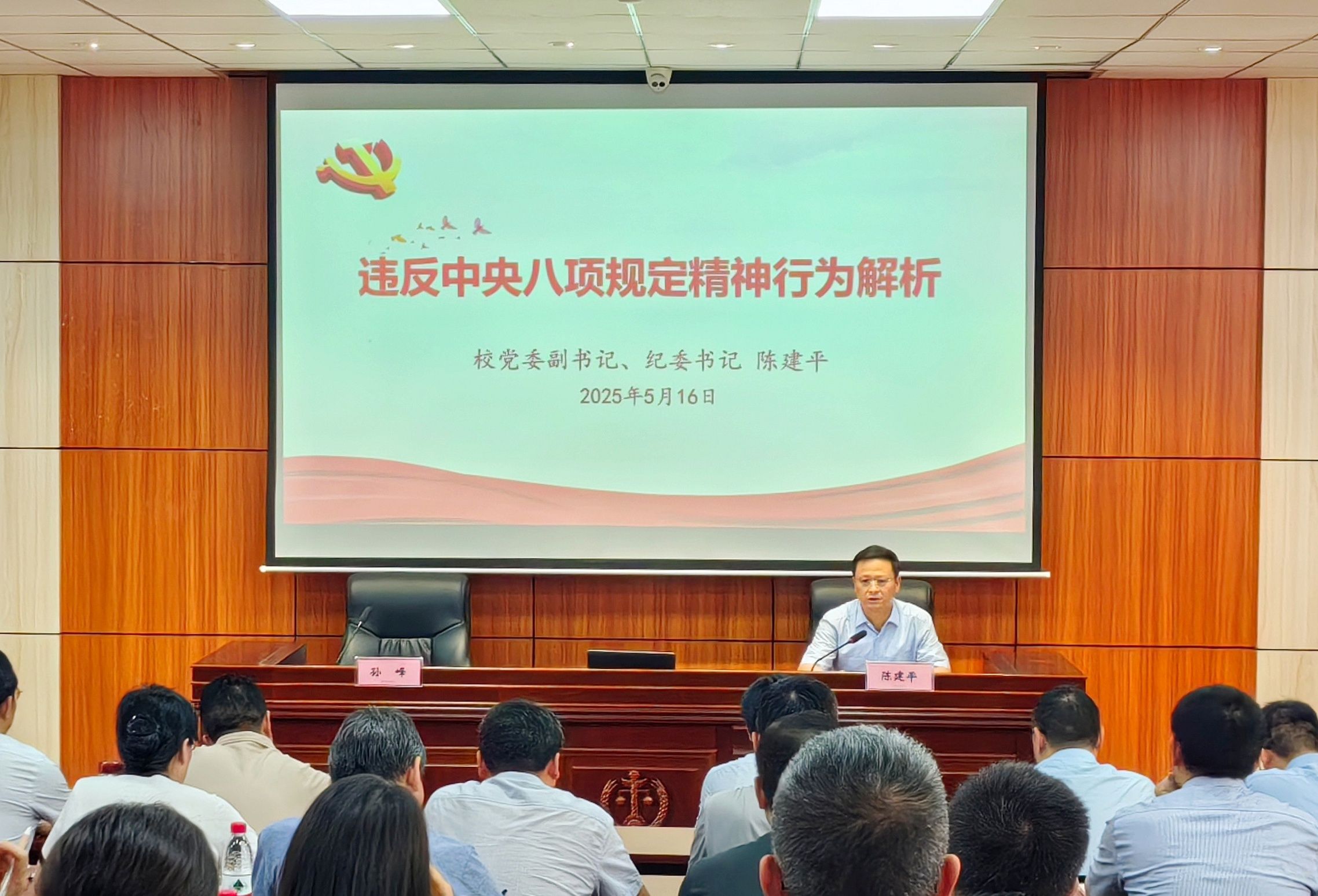 警示教育会后,陈建平以《违反中央八项规定精神行为解析》为题,从“中央八项规定:从严管党治党的关键一招”“持续正风肃纪:八项规定精神的具体要求”“纠‘四风’树新风:党员领导干部的担当作为”三个方面,结合鲜活生动的案例剖析,对中央八项规定精神进行了深入解读。