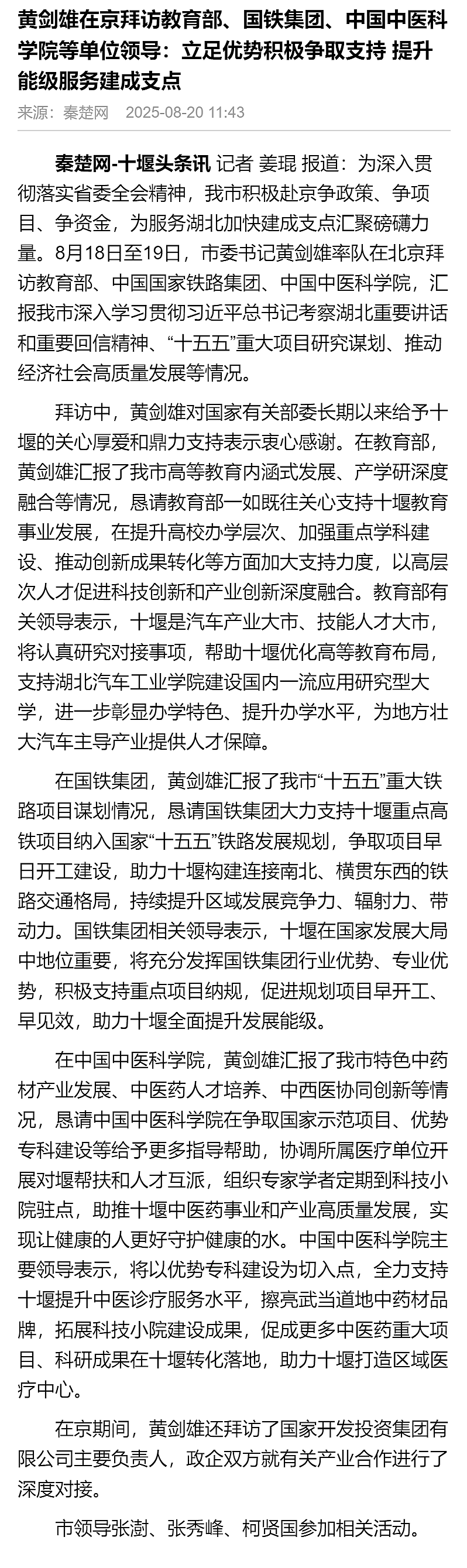 黄剑雄在京拜访教育部、国铁集团、中国中医科学院等单位领导:立足优势积极争取支持 提升能级服务建成支点