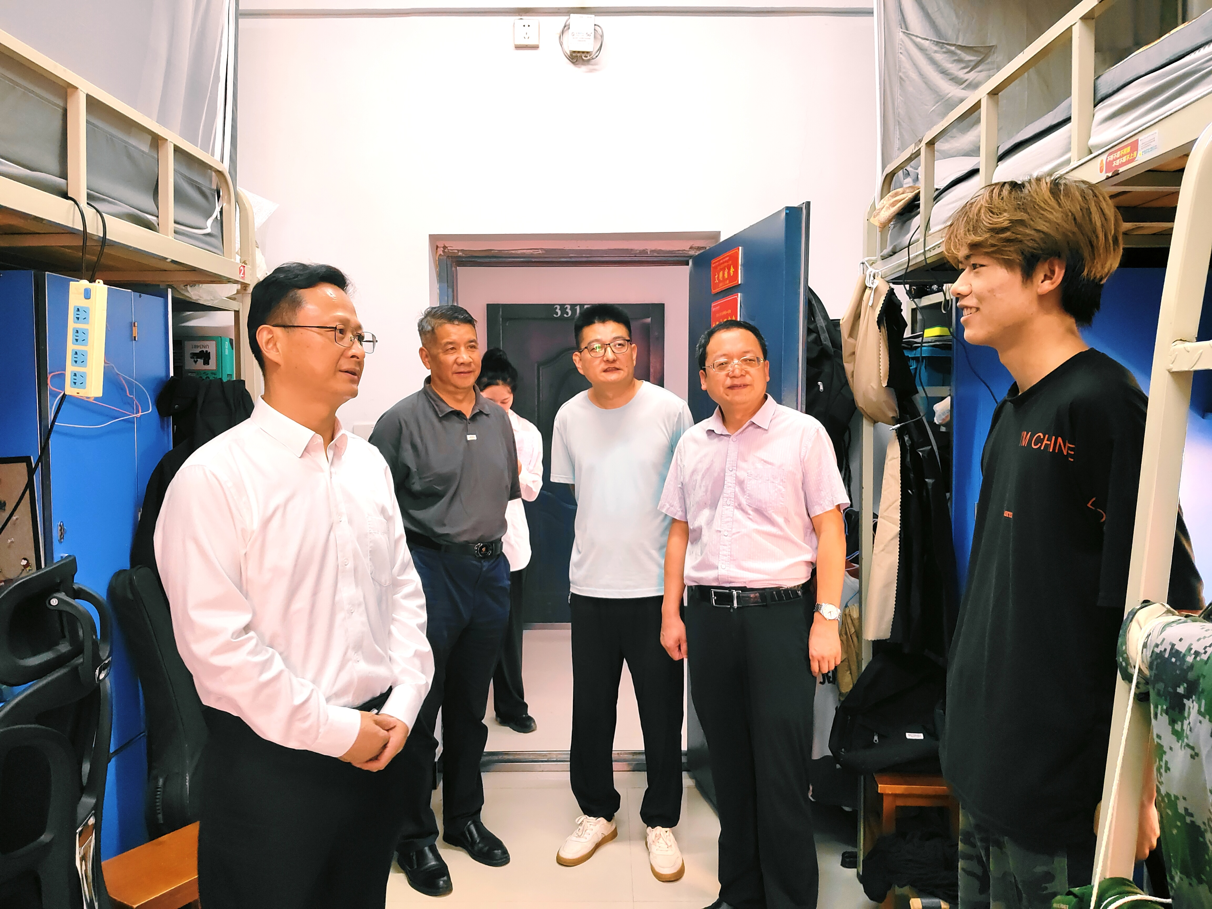 走进学生宿舍,陈建平便与同学们亲切交谈,详细询问大家的家乡籍贯、返校行程是否顺利及在校适应情况,并仔细检查宿舍设施配备,确保学生生活舒适安全。在轻松的交流中,他精准掌握学生思想动态,及时回应大家的关切。