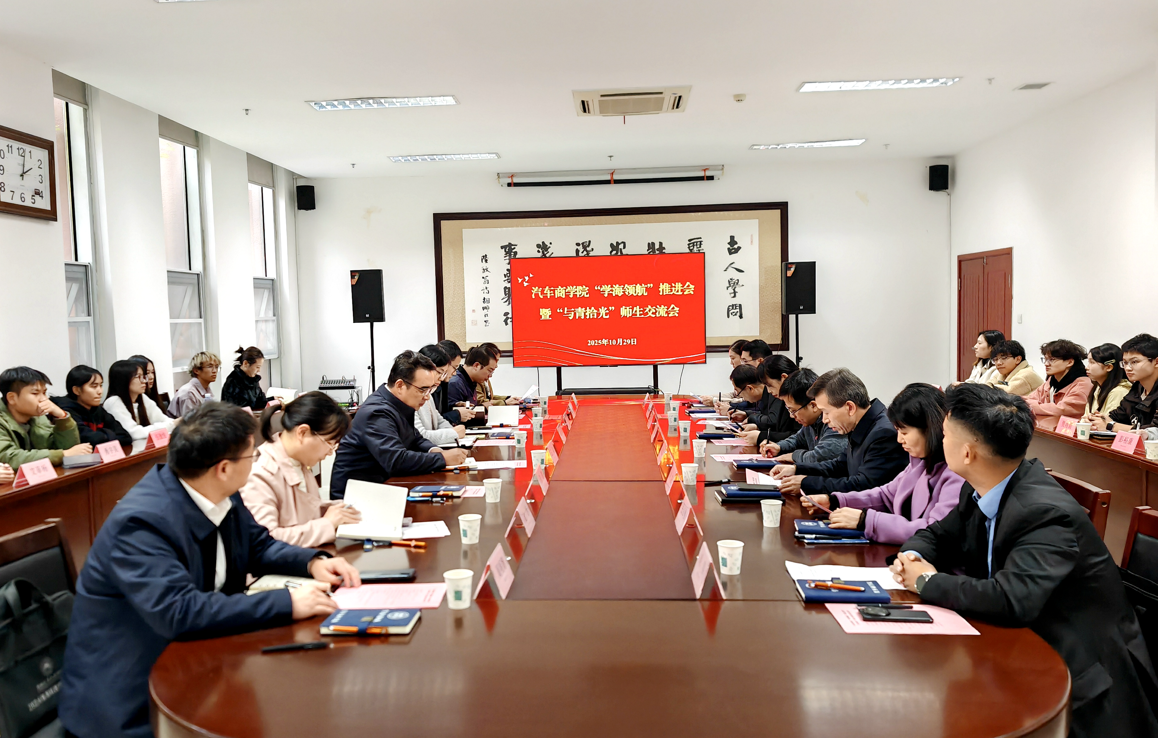 10月29日下午,王晓参加汽车商学院“学海领航”工作推进会暨“与青拾光”师生交流会,充分肯定了汽车商学院“学海领航”活动的创新实践与成效。他指出,该活动对学生全面成长成才意义重大,并提出三点要求:一是凸显“领航”灯塔作用,实现“引领”与“赋能”结合;二是细化工作举措,确保“活动”与“成效”统一;三是强化协同效应,推动“学校-学院-学生”同频共振。