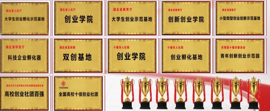 近年来,学校获批湖北省“大学生创业孵化园”“大学生创业孵化示范基地”“大学生创业示范基地”“创新创业学院”等多项荣誉。学生创新创业俱乐部2021年入选全国“高校十佳创业社团”,2025年入选全国“大学生KAB创业俱乐部”。