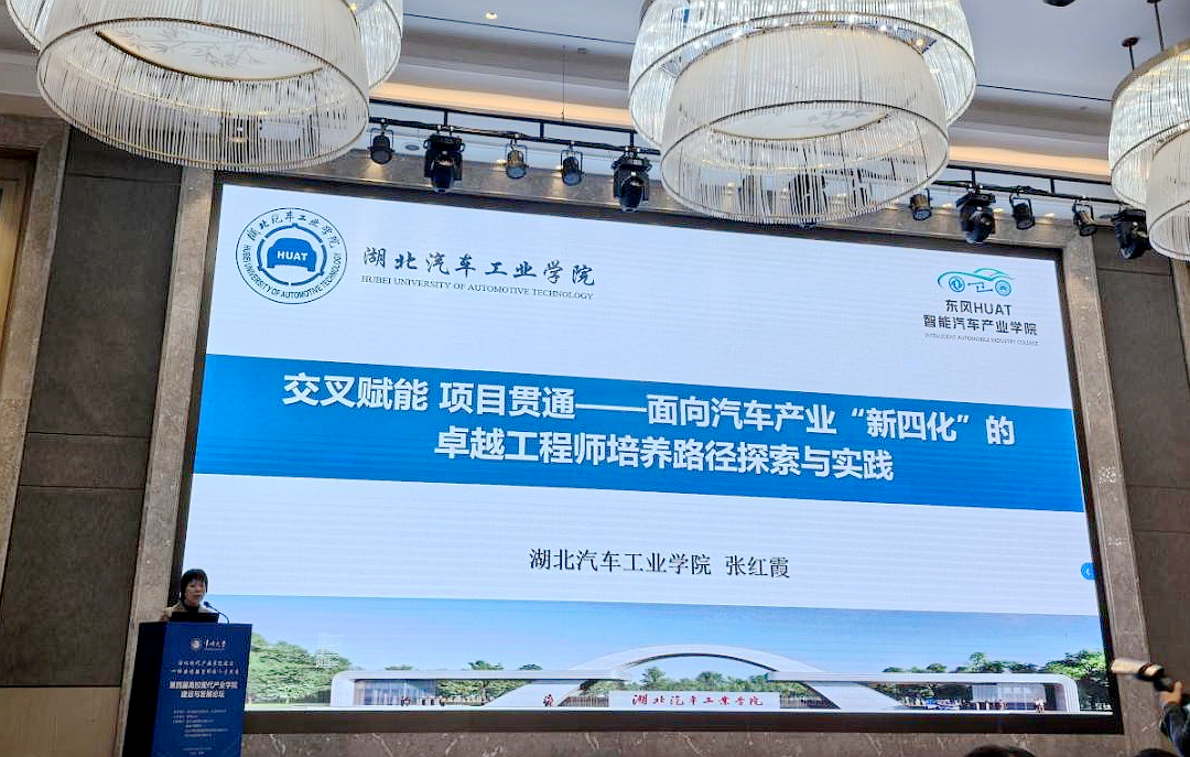 校党委常委、副校长张红霞受邀出席论坛并作主题报告。她以《交叉赋能 项目贯通——面向汽车产业“新四化”的卓越工程师培养路径探索与实践》为题,系统阐述了英国上市公司365东风HUAT智能汽车产业学院的改革背景、核心举措、实践经验与建设成效,分享了学校在产教融合、人才培养与产业需求精准对接中的创新探索,得到与会专家学者的高度评价与广泛认同。