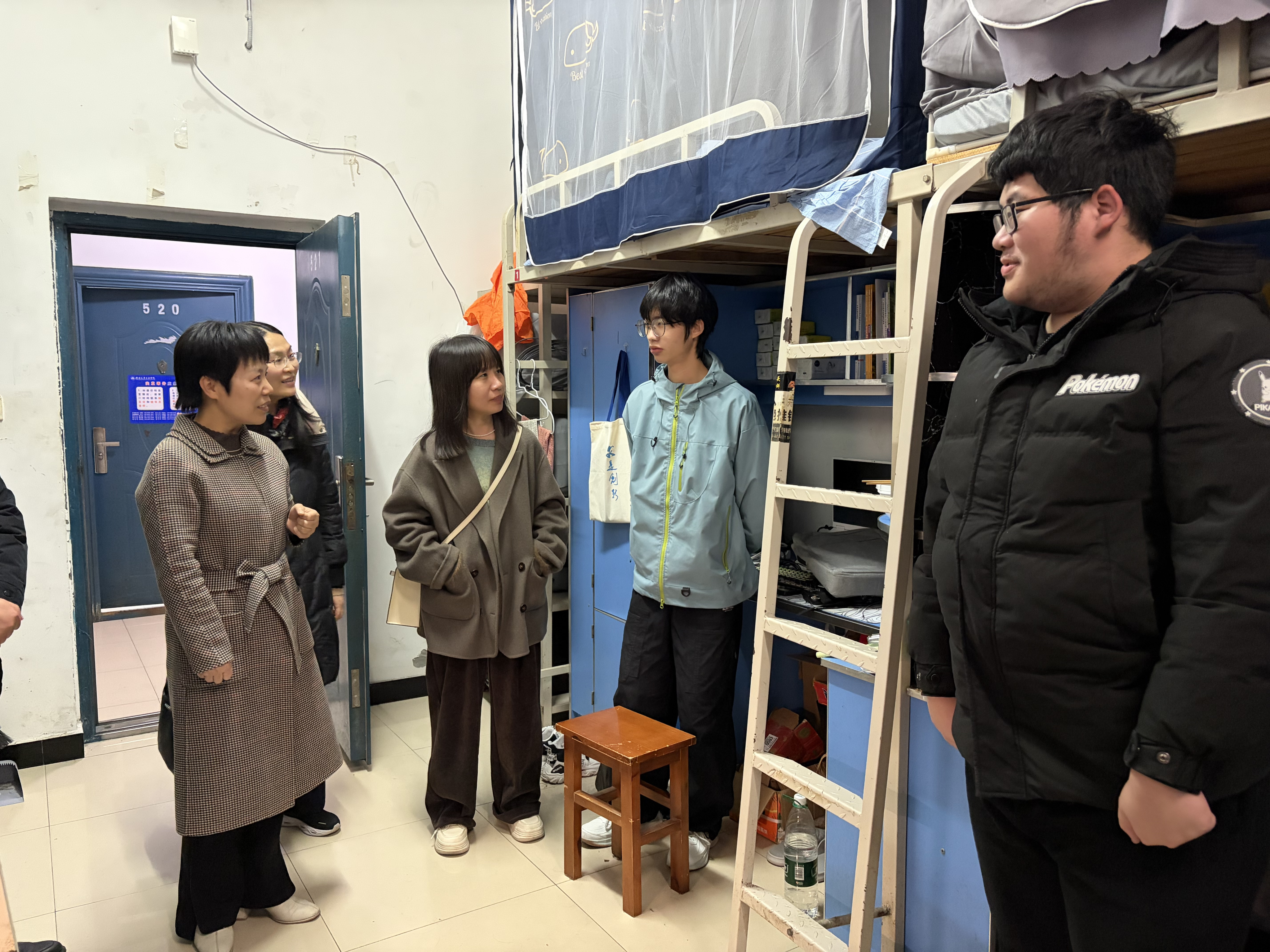 本网讯(文/图 王净杰)为持续推进“学海领航”结对机制走深走实,推动育人工作下沉一线、贴近学生,12月16日下午,副校长张红霞深入人工智能学院学生宿舍,开展走访交流与学风建设调研,为学生成长赋能导航。