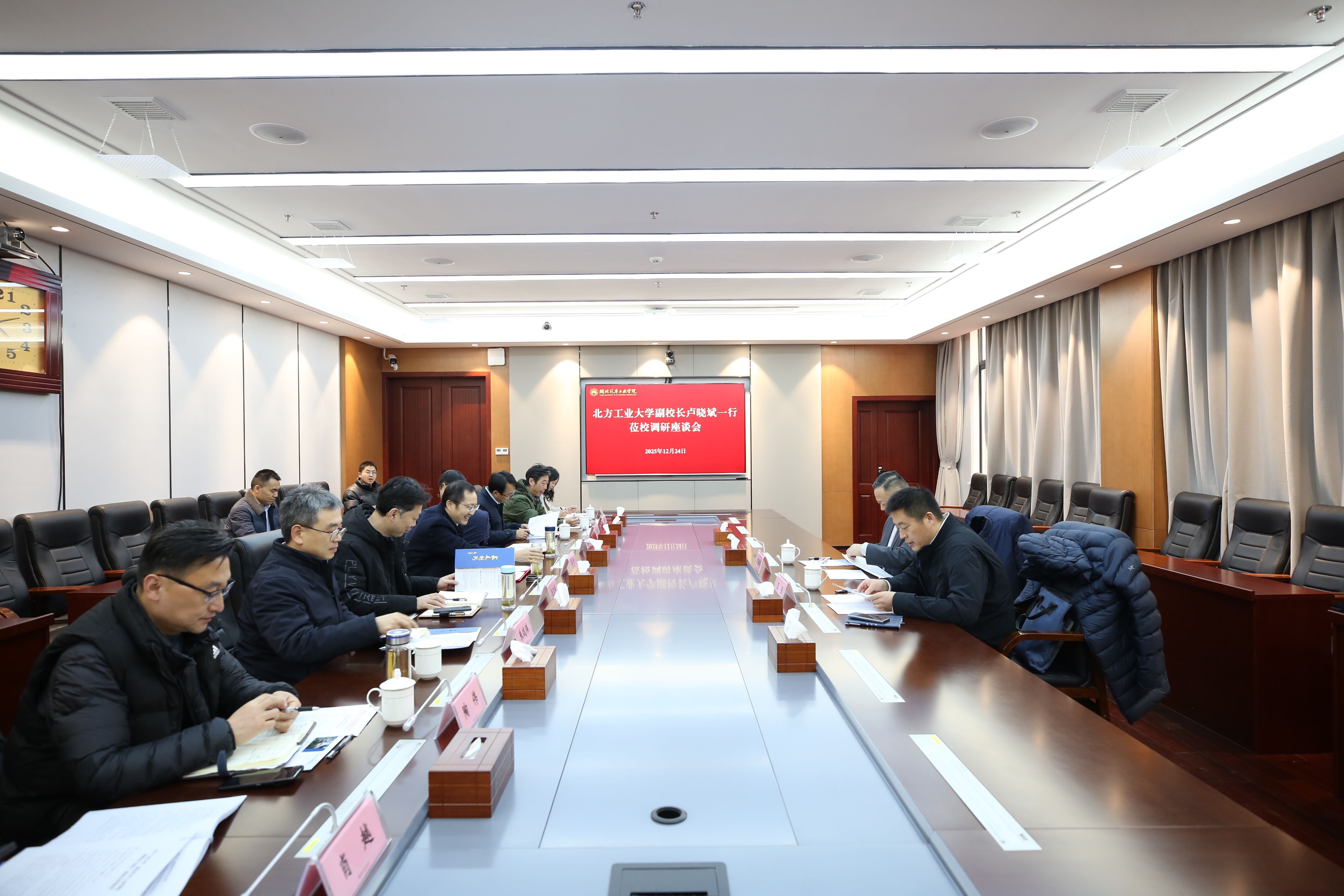 李涛代表学校对卢晓斌一行的到来表示热烈的欢迎,并简要介绍了学校办学历史和近年来取得的成果,回顾了学校与北方工业大学的合作渊源及近5年成效。李涛指出,两校以水为媒、因水结缘,双方在本科生访学、科学研究、来华留学生交流等方面保持了密切而富有成效的合作。新一轮框架合作协议将围绕学科建设、科学研究、人才培养、师资培训与指导等全方位扩大合作领域,标志着双方在持续深化合作的道路上又迈进了一大步,更是携手迈向更深层次、更广领域合作的新起点。
