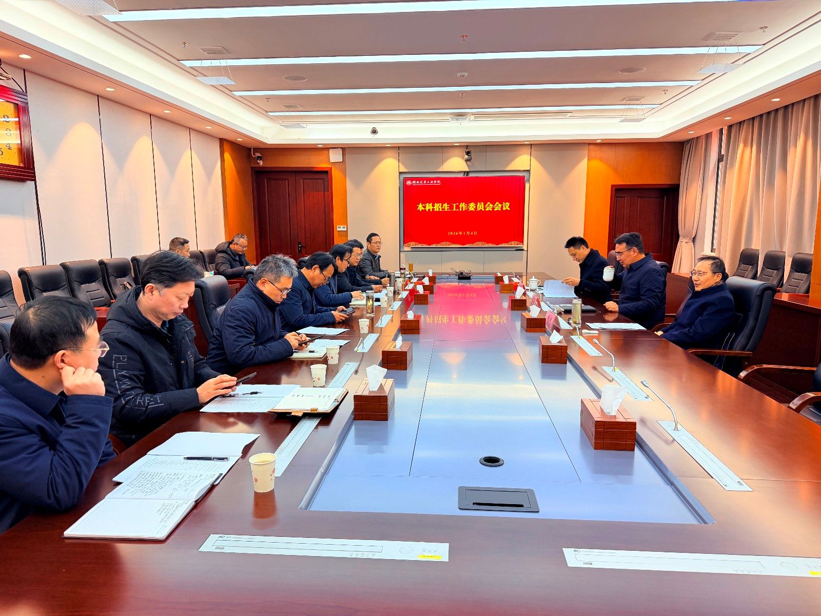 本网讯(文 周炼/图 杨男)1月4日下午,学校在产教大楼三楼多功能会议室召开本科招生工作委员会会议。校本科招生工作委员会主任王晓、李涛出席会议,副主任王文山主持会议。校党委书记王晓作讲话。